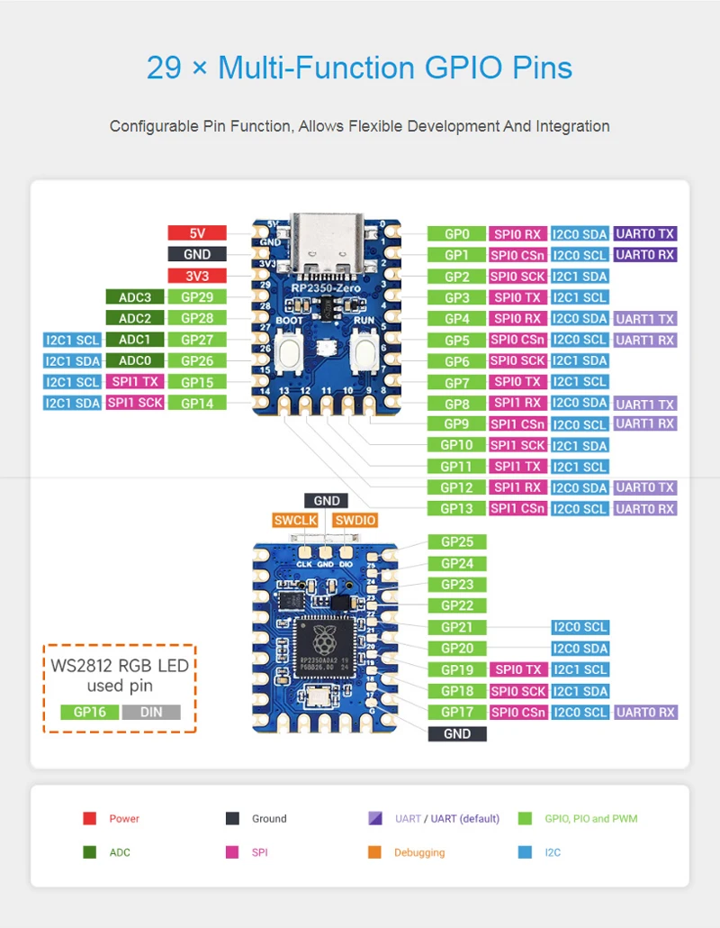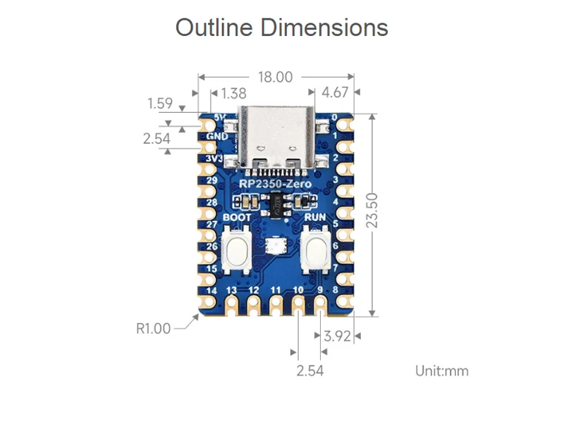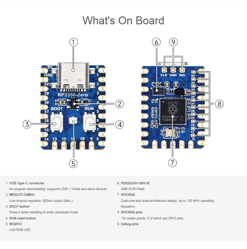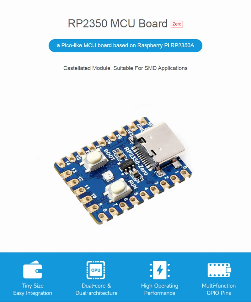RP2350-Zero Mini Development Board Based On Raspberry Pi Dual-Core Dual-Architecture Microcontroller Built-in temperature sensor