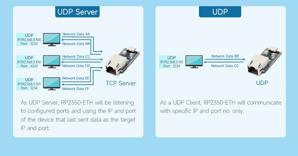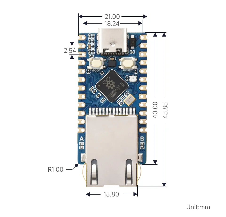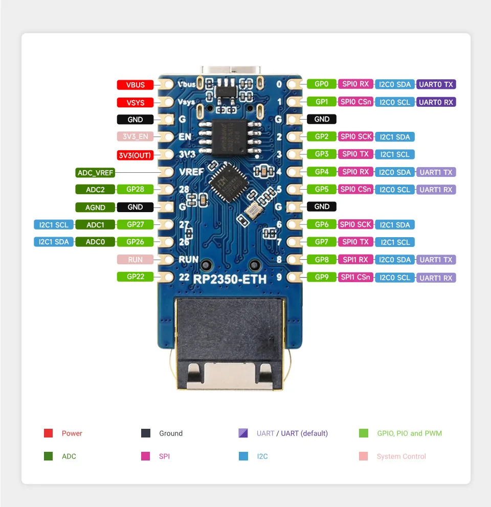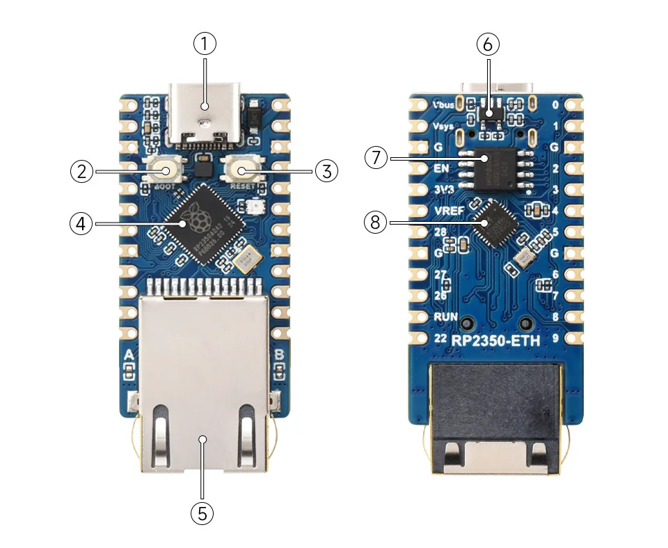 Mini placa de desarrollo Waveshare RP2350-ETH, módulo de puerto Ethernet RP2350, placa de desarrollo de microcontrolador Raspberry Pi - imagen 5