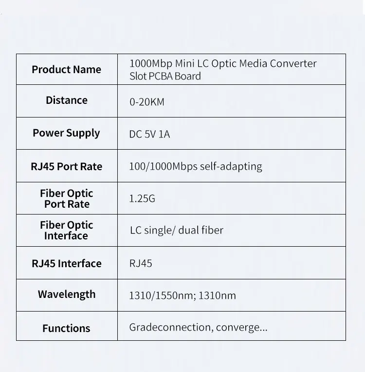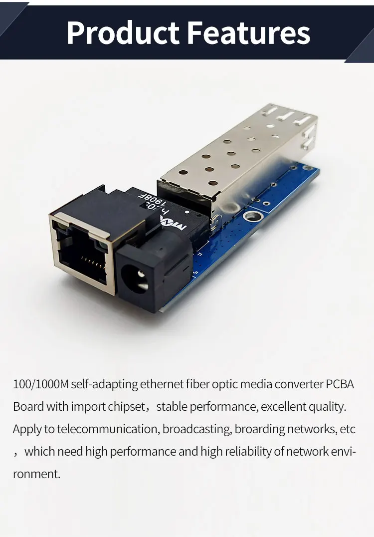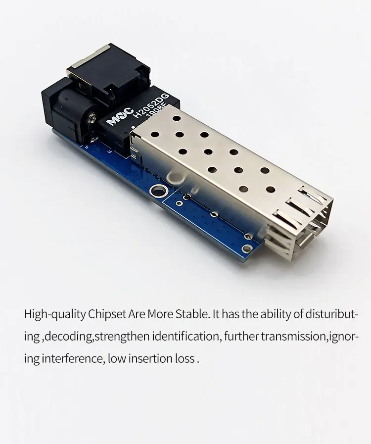 Experimente una transmisión de datos perfecta con nuestro mini conmutador de fibra óptica de 1,25G, que cuenta con un módulo transceptor Gigabit/100Mbps SFP para conectividad de alta velocidad.