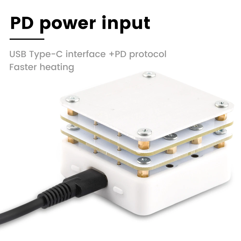 En primer lugar, el producto funciona como ejecución anunciada por algunos defectos menores. Se calienta rápidamente y alcanza temperaturas de al menos 230 ° C qué es más que suficiente para mi 163 ° pasta de soldadura. Soliamente no encuentro opciones para una curva de reflujo, pero no me esperaba que esta sea una característica. Sin embargo, la característica y la función le daré cinco estrellas cuando pagé 8 € y obtuvo lo que pagé. Entonces ahora por los defectos. Uno de los botones no se puede presionar ni utilizar. Puedo hacerle engañar un poco con fuerza para que el dispositivo funcione pero es realmente tedioso. También uno de los hilos para sujetar la placa calefactora se rompía en el momento de la entrega, por lo que no es tan estable como se supone. Cuando lo utilice con una fuente de alimentación de 65 W, el dispositivo falla varias veces al calentarse y no funciona, por lo que tenía que usar otra fuente de mayor potencia que pueda entregar hasta 80 W para que el dispositivo funcione. Aún es una gran oferta por el precio. Funciona o es al menos utilizable para el uso previsto. Además, la entrega ha sido bastante rápida.