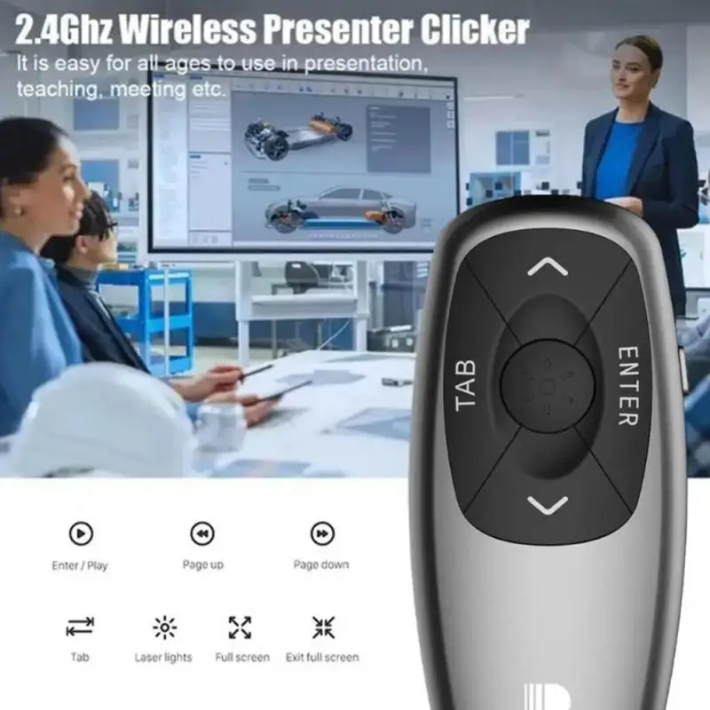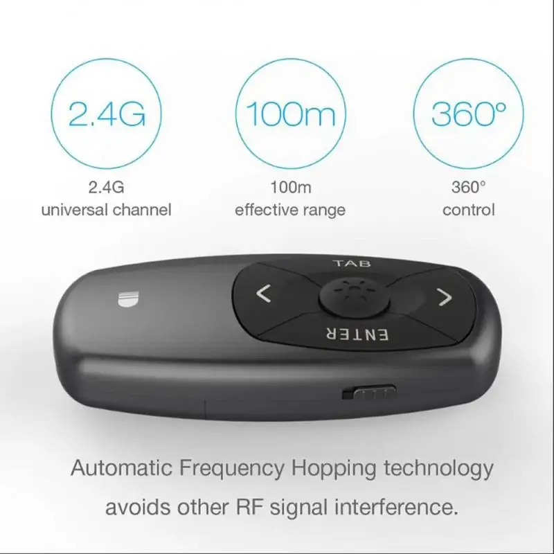 Mini presentador inalámbrico de 2,4 GHz, Clicker, puntero PPT, controlador remoto, volumen de giro, bolígrafo abatible de suspensión automática para presentación de Powerpoint