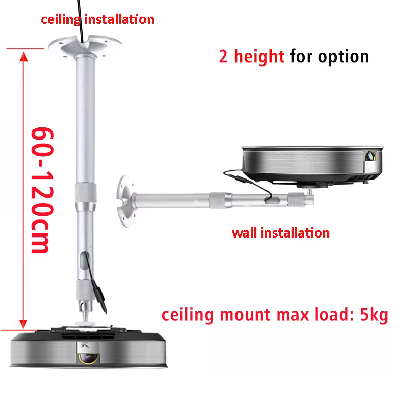 Carga máxima: 5kg/11lbs para montaje en techo, Porque la altura es larga, por lo que le sugerimos que lo use para proyector dentro de 3 kg para montaje en pared