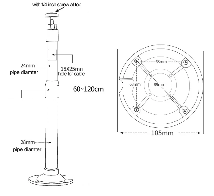 Altura: desde 60cm (23,62 ") hasta 120cm (47,24")