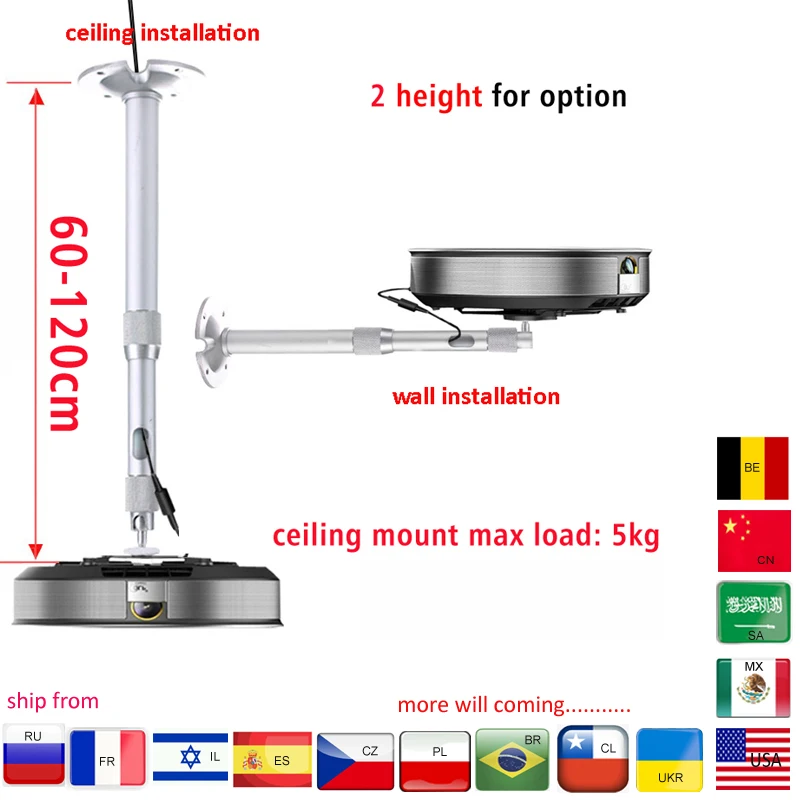 Comprar Mini proyector de aluminio para colgar en la pared, soporte de techo de 60cm, 100cm, 120cm, 5kg, Z1, Z4X, Z5, H1S, J6S, C6, V8