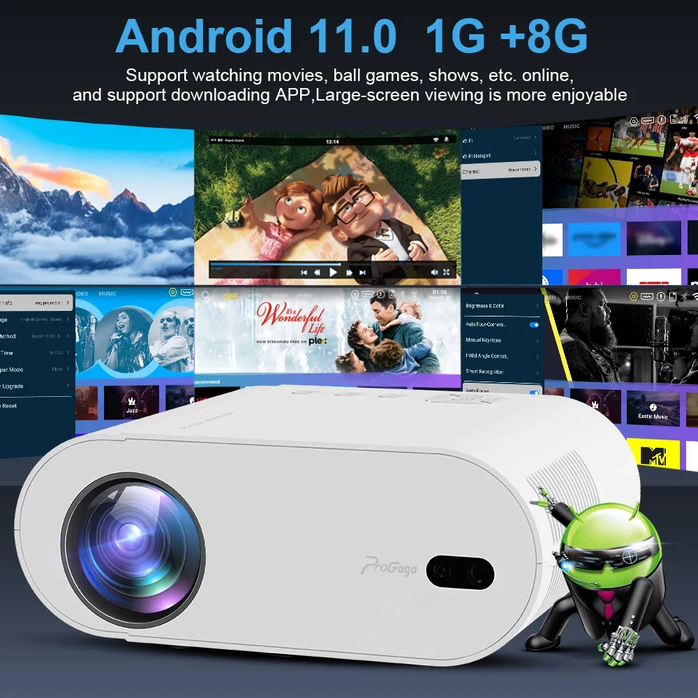 This Android TV Projector with 5000+ apps gives you access to over 200,000+ movies and TV episodes. Watch favorite image from Netflix, Prime Video, YouTube, and others. In addition, the mini projector has a compact design,will help you to carry it in anywhere.