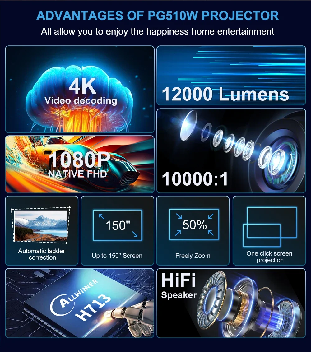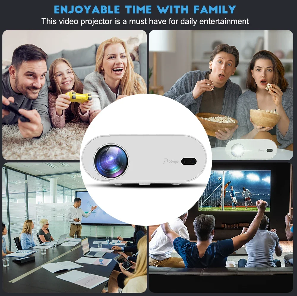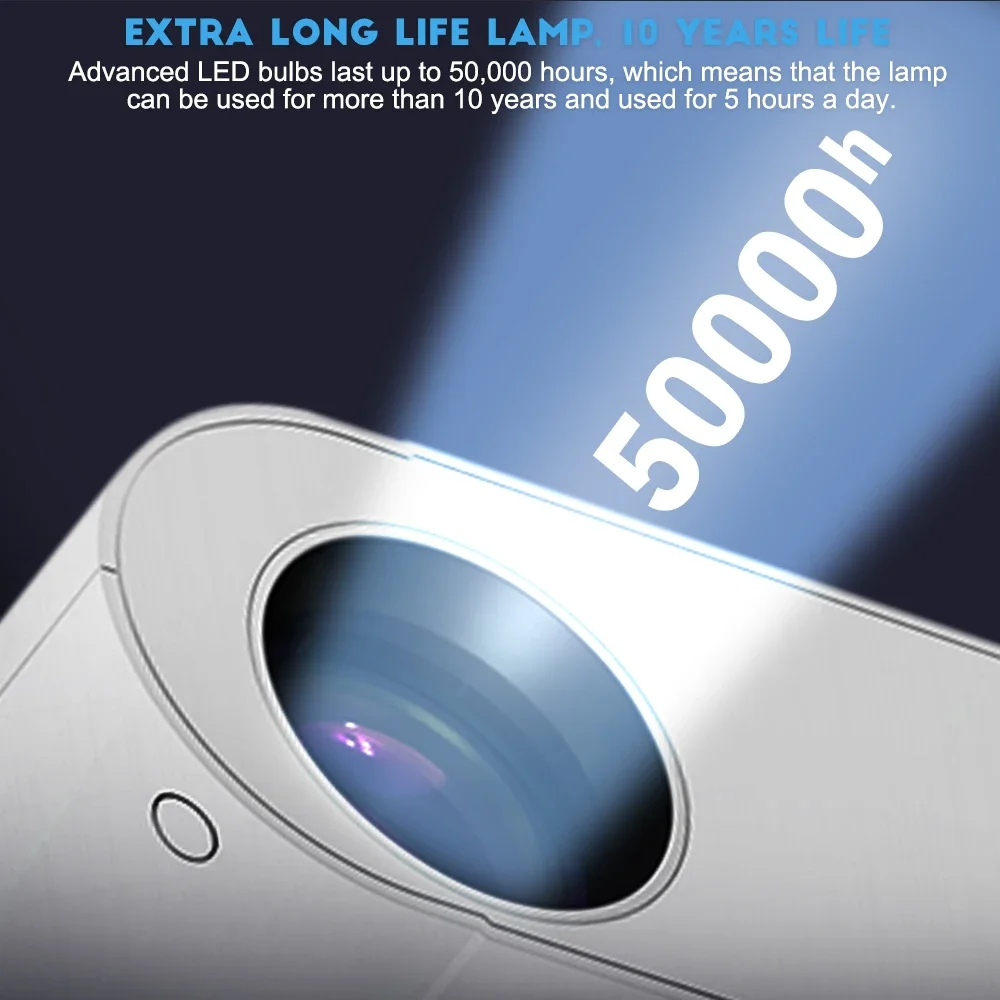 with native 1920*1080P resolution, 12000 lumens brightness, and 10000:1 contrast, provides superior image fidelity and precise color accuracy. Also, it supports ultra HD 4K Videos (H.265 30hz/MP4 format) decoding, restoring full HD video quality with excellent shadow detail. 4k Support projector will give you a home theater experience, also is a great option for you to enjoy outdoor movie nights.