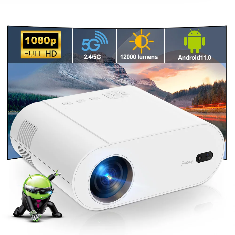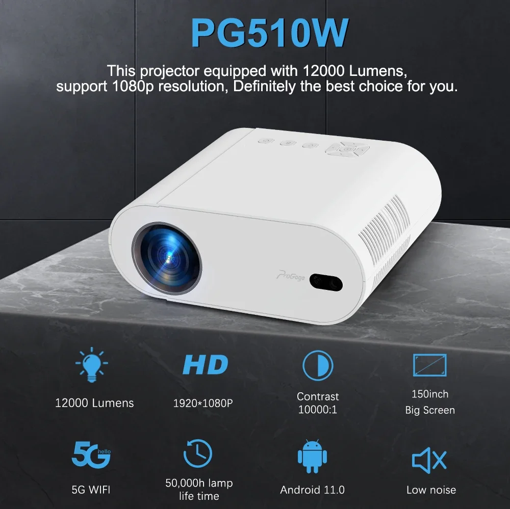 Comprar Mini proyector Full HD 1080P PG510W Android 11 5G WiFi 12000 lúmenes PG510 4K Video cine en casa haz exterior proyector portátil