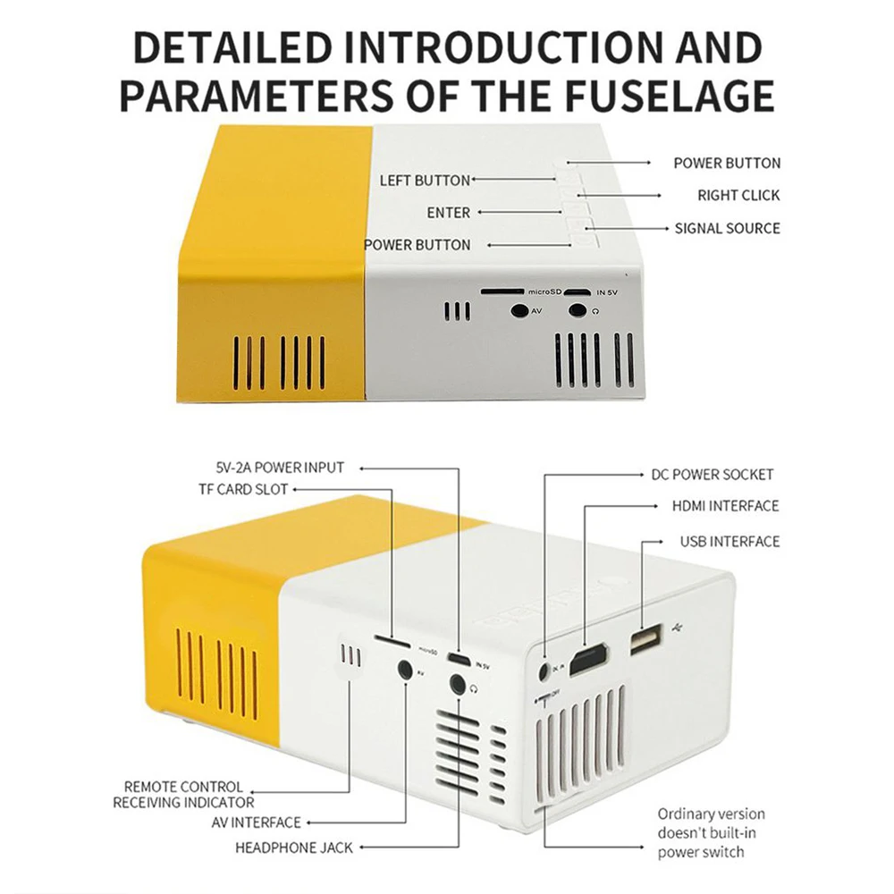 Nuevo YG300 Teléfono móvil con cable Misma pantalla Mini proyector Hogar LED Proyector portátil para niños