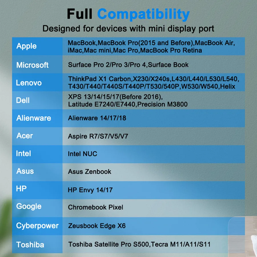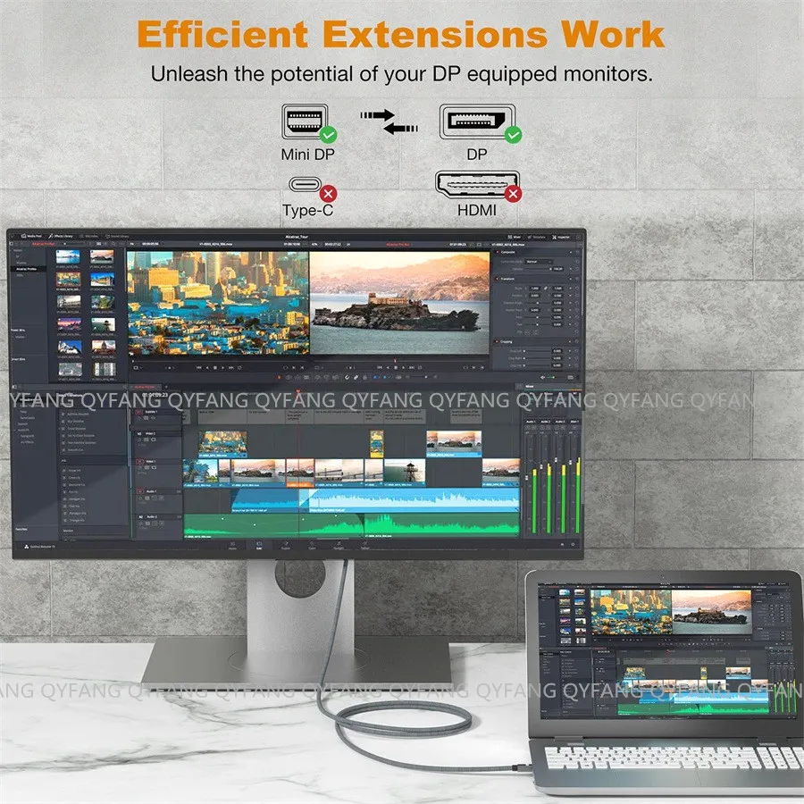 (3): Amplia compatibilidad y fácil conexión, nuestro cable Mini DP a DP 8K es ampliamente compatible con Macbook Pro, Macbook Air, Surface Pro, Mac Mini y otras computadoras portátiles equipadas con mini displayport. Mientras lo usa, conectándolo directamente desde sus mini portátiles DP a sus monitores Displayport.