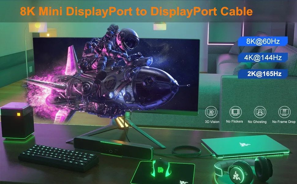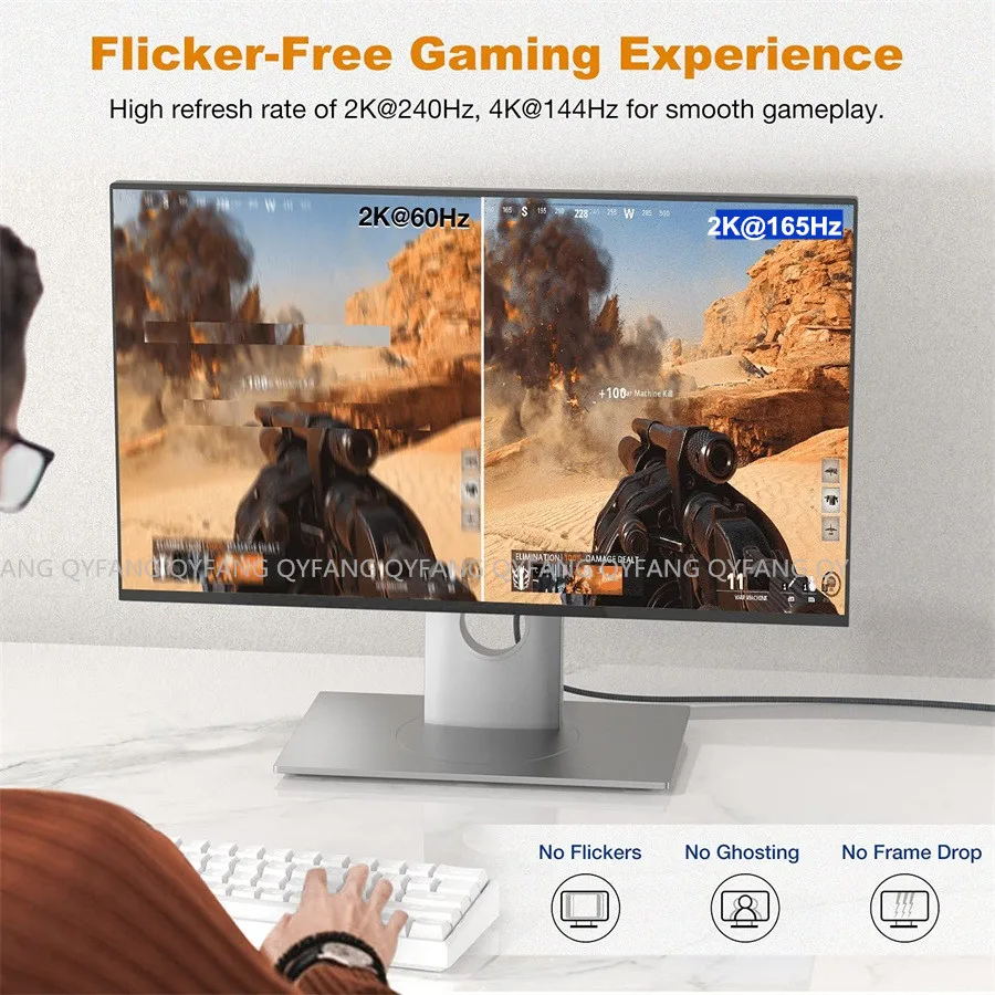 (2): La velocidad de actualización 4K DisplayPort 1.2 compatible con juegos (2K@144Hz) y la alta resolución de hasta 4K (3840x2160@60Hz) lo convierten en una opción óptima para una experiencia de juego más fluida y sin desgarros.