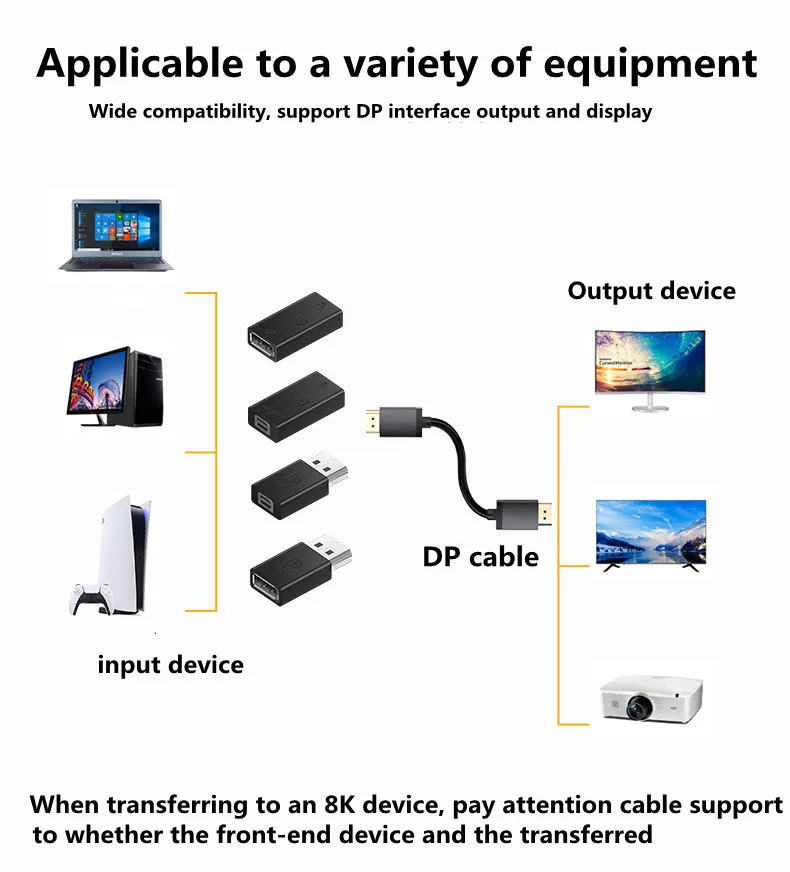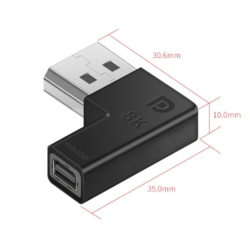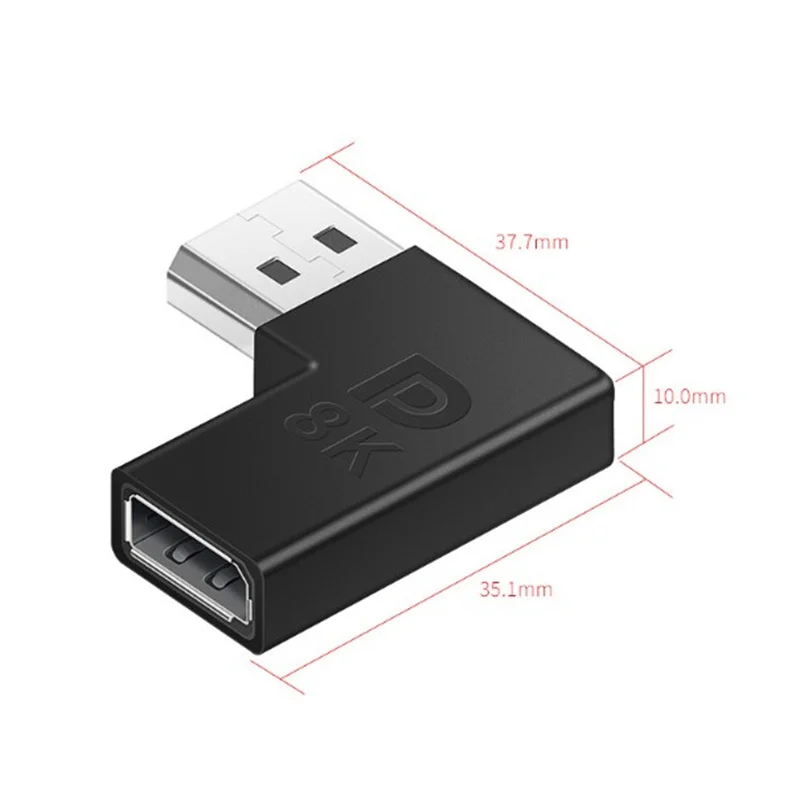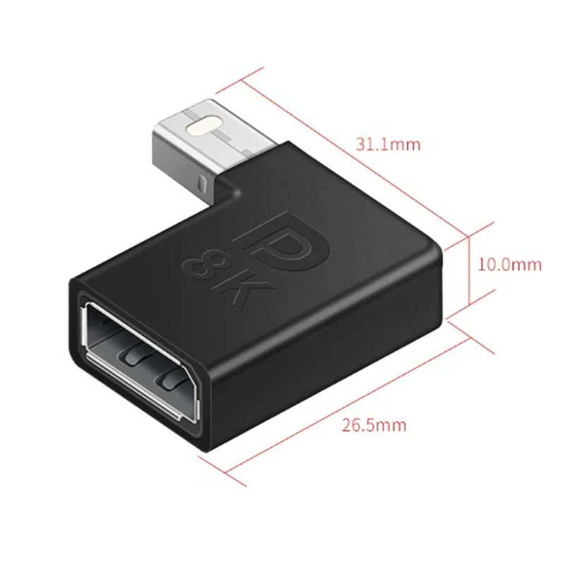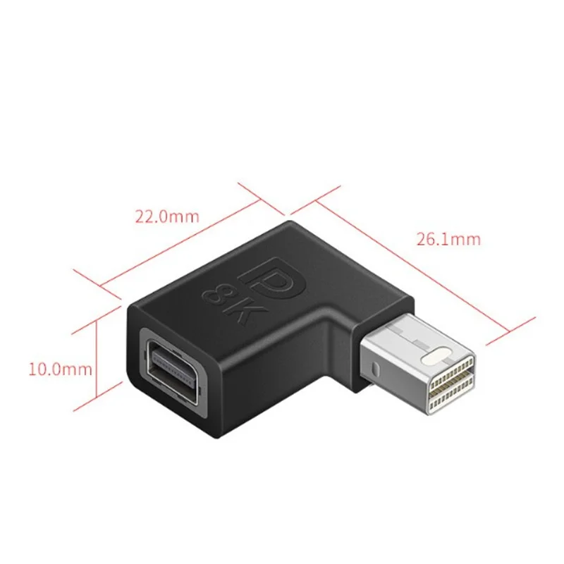 Mini puerto de pantalla de 90 grados DP 1,4 adaptador convertidor macho a hembra DP 8K 60Hz 4K vídeo para ordenador portátil Monitor proyector