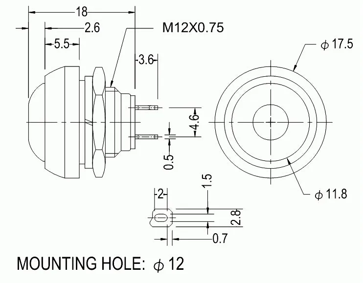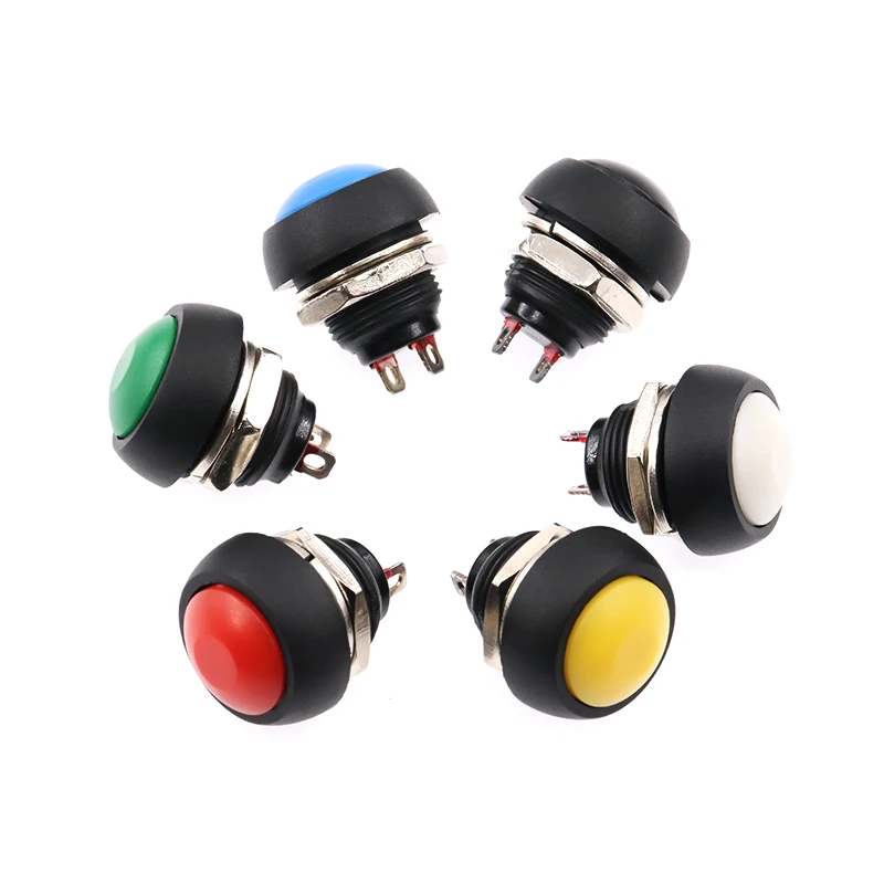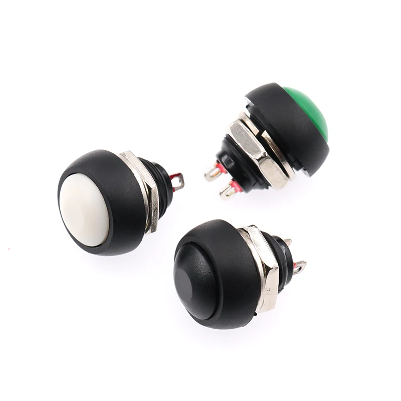 Comprar Mini pulsador de plástico piezas PBS 33B, botón redondo de encendido y apagado, interruptor momentáneo de 2 pines y 12mm, reinicio de energía a prueba de agua, sin bloqueo, 1 unidad