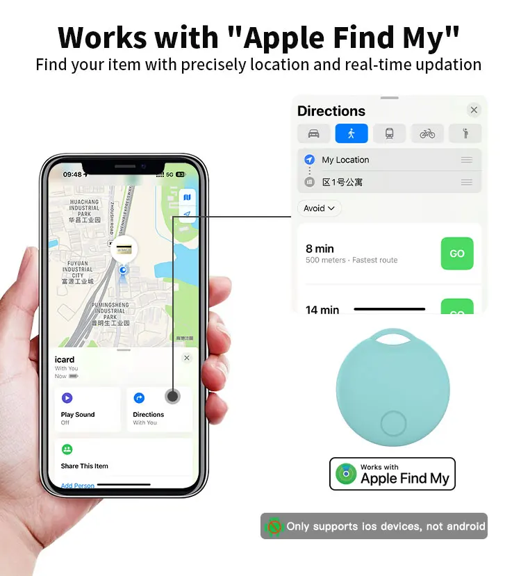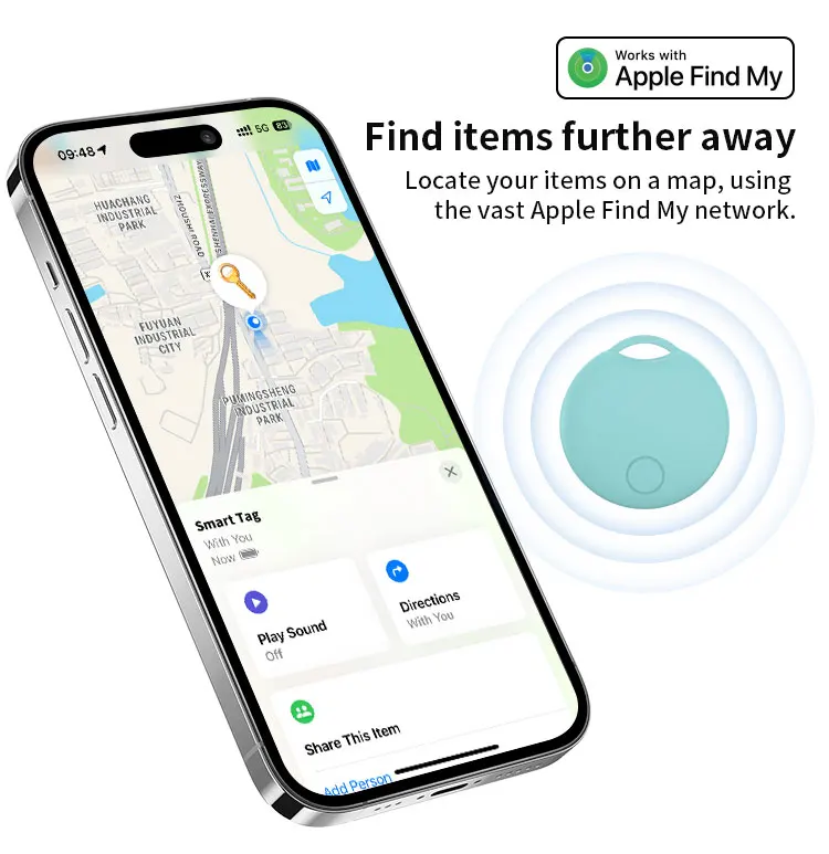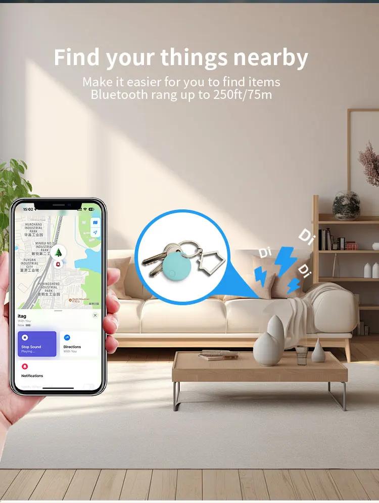 1. Seguimiento de larga distancia: cuando la etiqueta inteligente está fuera del alcance de Bluetooth con sus dispositivos iOS, también se puede rastrear a través de Apple Find My App cuando hay dispositivos ISO de otras personas cerca.