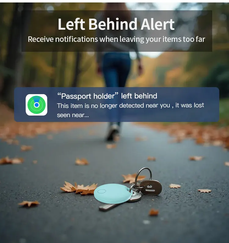 3. Recordatorio: recibirá un mensaje en el iPhone una vez que el rastreador inteligente esté fuera del alcance de Bluetooth (unos 30-70m) al aire libre, puede encontrar el artículo perdido en el tiempo.