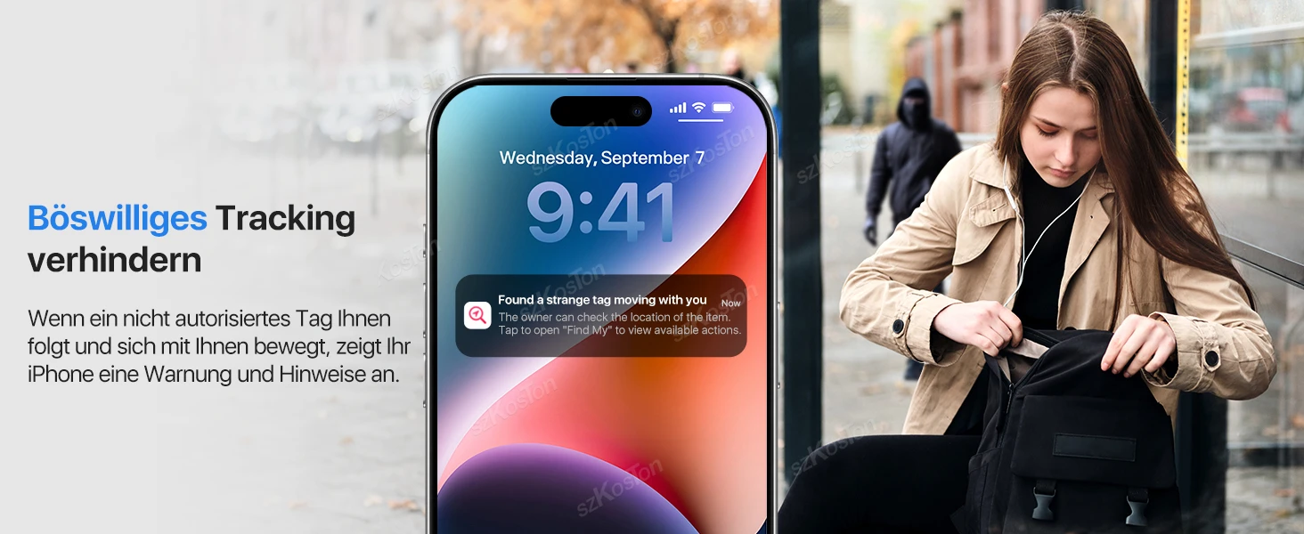 Modo perdido y protección segura: activa el modo perdido y "¿Dónde está?La red con cientos de millones de dispositivos Apple le ayuda a encontrar su rastreador de maletas.Una vez que se detecte la etiqueta, recibirá automáticamente una notificación en su iPhone.En modo perdido, el rastreador de aire permanece protegido y no se puede emparejar con otros dispositivos.Szkoston
