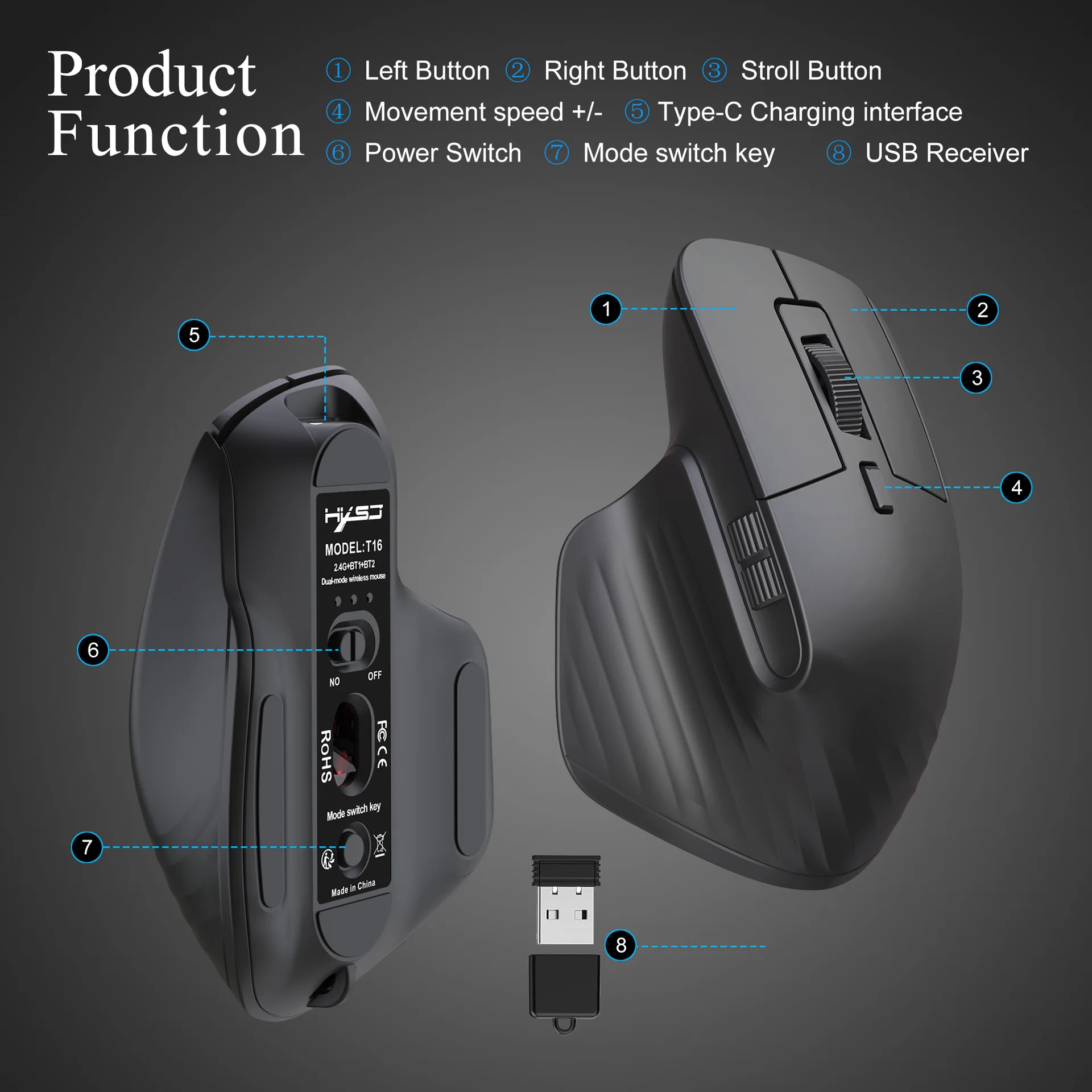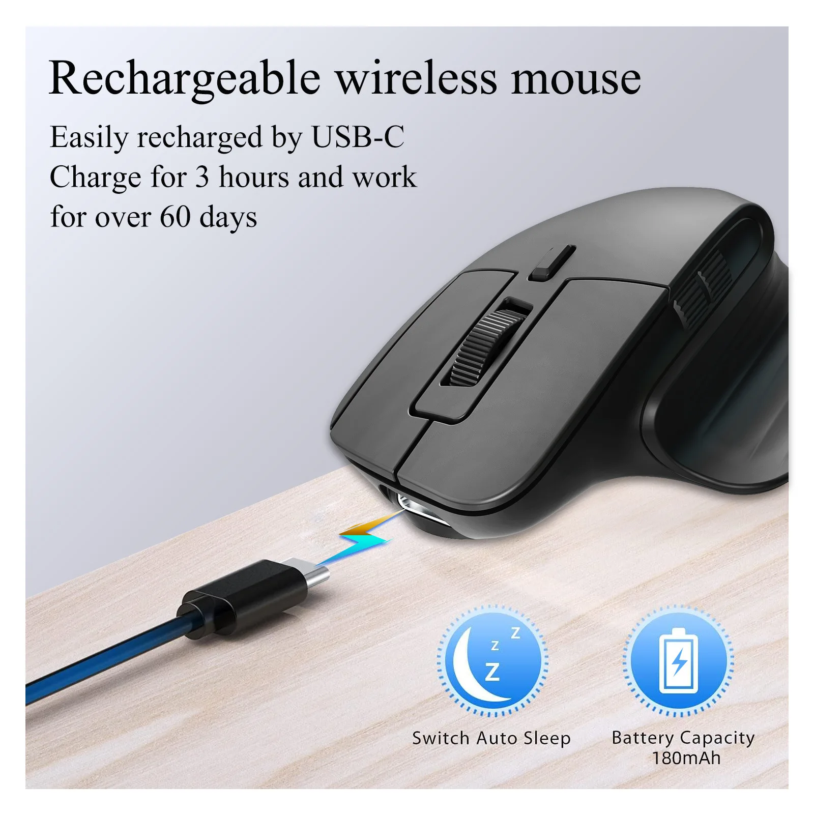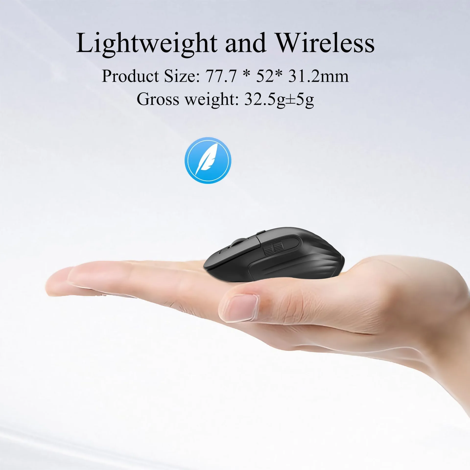 Mini ratón de diseño ergonómico, ligero, portátil, DPI, ajustable, recargable, 2,4G, Bluetooth, modo dual, uso de oficina para mujeres y niños