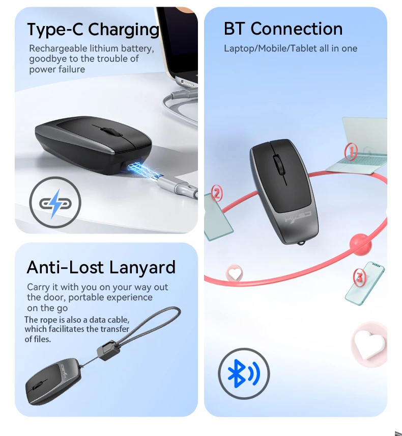 4.Funcionalidad de la tarjeta TF: el soporte de almacenamiento único de 2 TB amplía la utilidad más allá de las funciones estándar del mouse.