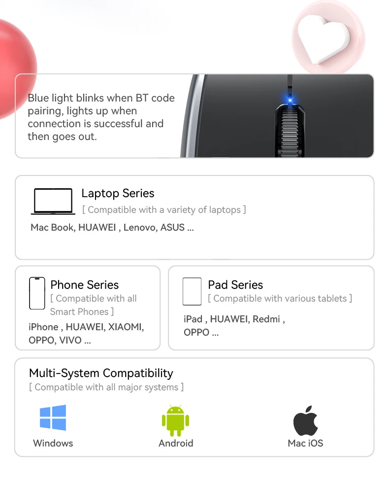 Paso 2:Habilite Bluetooth en su dispositivo (tableta/PC/teléfono), navegue por la configuración "BT" y conéctese al "BT5.1Mouse".La luz azul se apaga una vez emparejada.