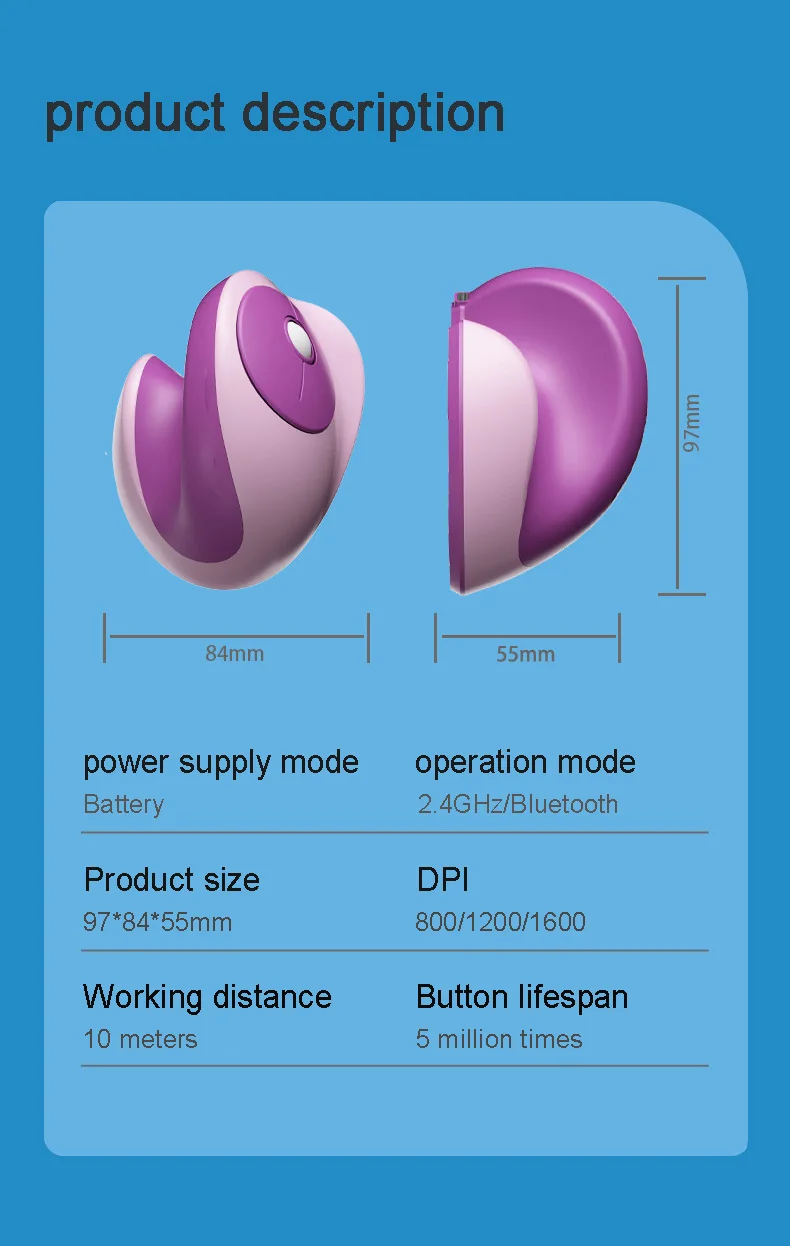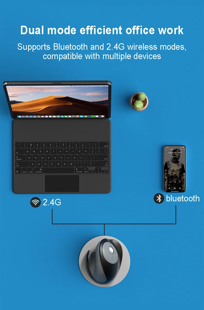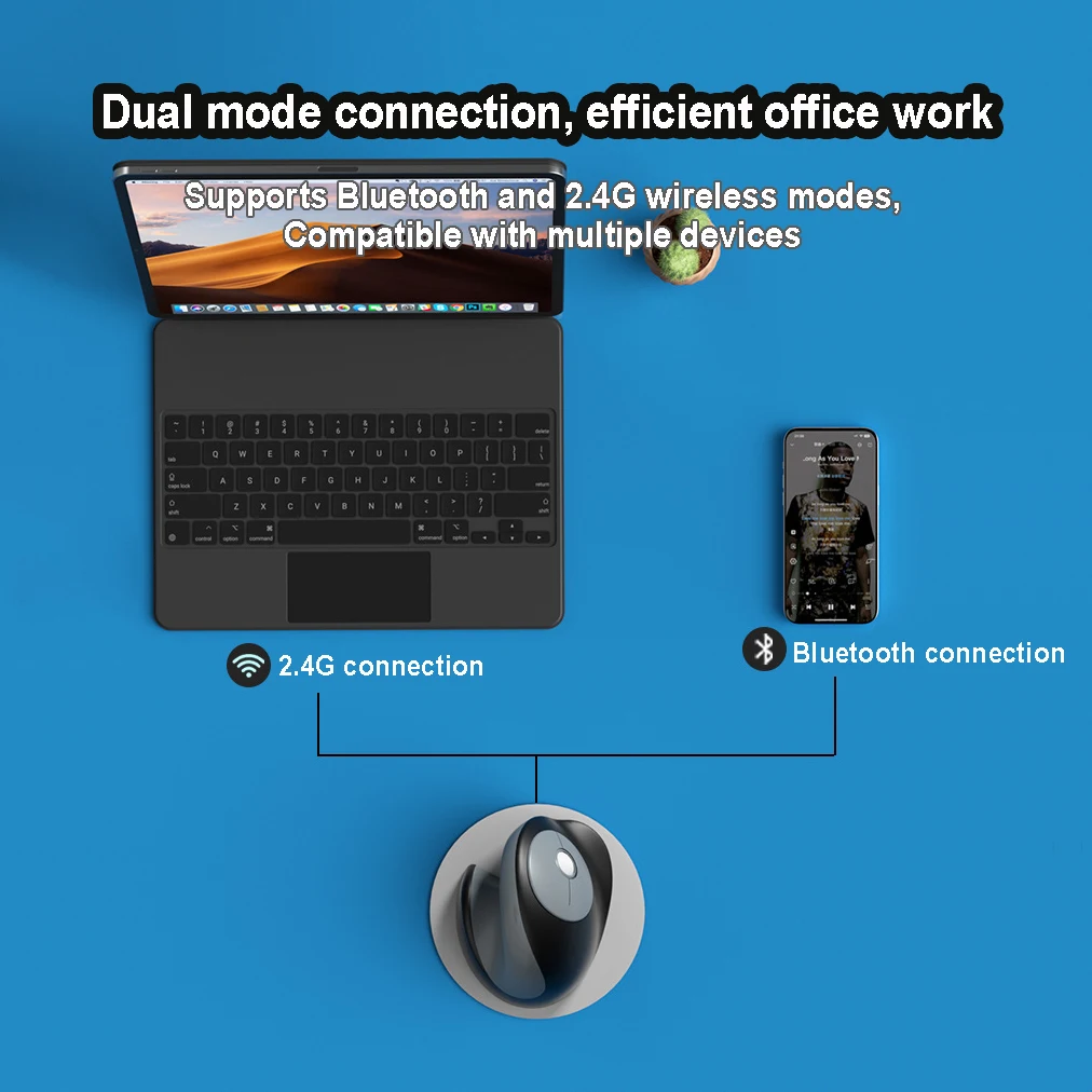 Mini ratón pequeño ergonómico Vertical, ratón inalámbrico silencioso de modo Dual recargable, ratón de oficina ajustable DPI para Ipad, PC y teléfono
