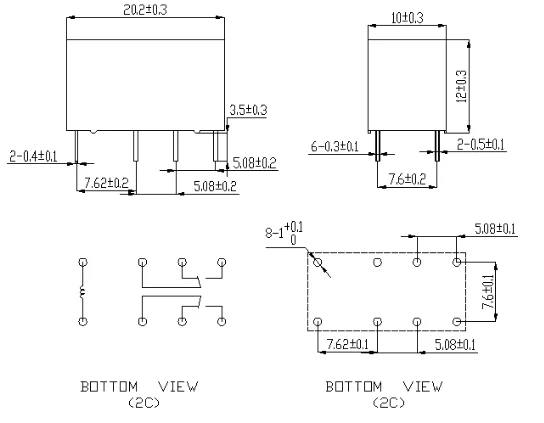 Relés de 8 pines PCB tipo HK19F 2NO 2NC