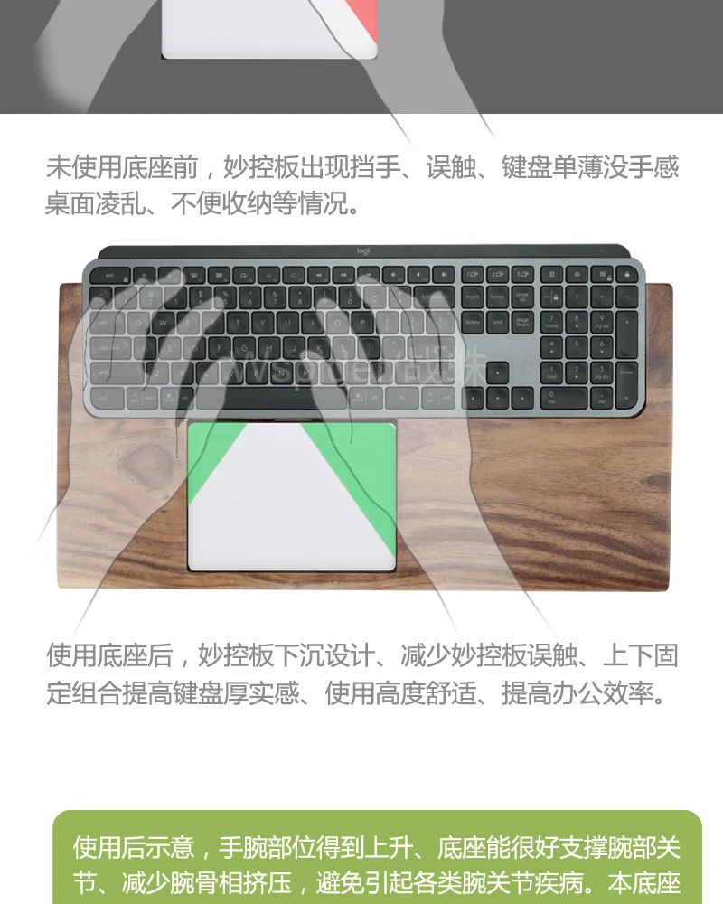 Black Walnut Mxkeys Mini Keyboard Hand Rest Custom Keyboard Base Bracket Ergonomics Anti Slip and Comfortable Palm Rest Design