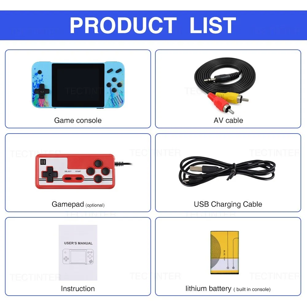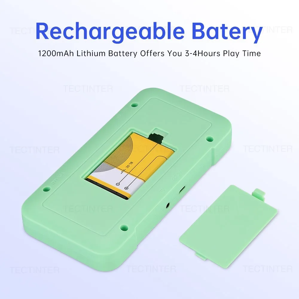 Esta consola portátil viene con una batería de litio recargable de 1200mAh, con más de 4 horas de duración de la batería. Cuando estás de viaje de negocios, de viaje, de camping, no tienes que preocuparte de agotarte la energía.