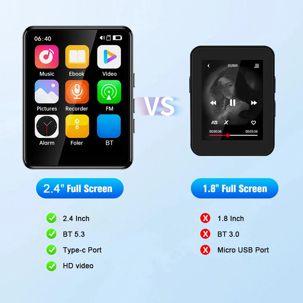 Comprar Mini reproductor MP3 Walkman para estudiantes, reproductor de música deportivo portátil, 2,4 pulgadas, HD, pantalla táctil completa con FM/altavoz