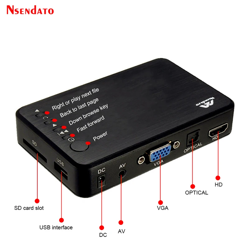Mini reproductor multimedia Full HD, reproducción automática USB, HDD externo, con cargador de coche, HD, VGA, AV, para SD, U, disco MKV, RMVB