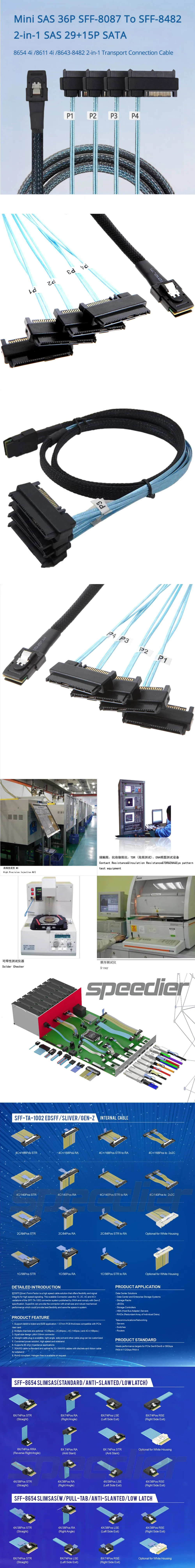 Mini SAS 36P SFF-8087 a SFF-8482 2 en 1 SAS 29+15P SATA 8654 4i /8611 4i /8643-8482 Cable de conexión de transporte 2 en 1