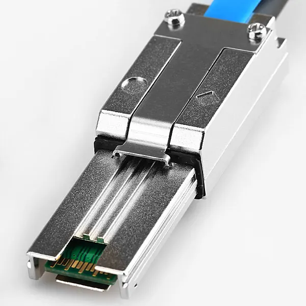 Es un cable externo Mini Serial Attached SCSI HD X4 () a Mini Serial Attached SCSI X4 (SFF-8088).