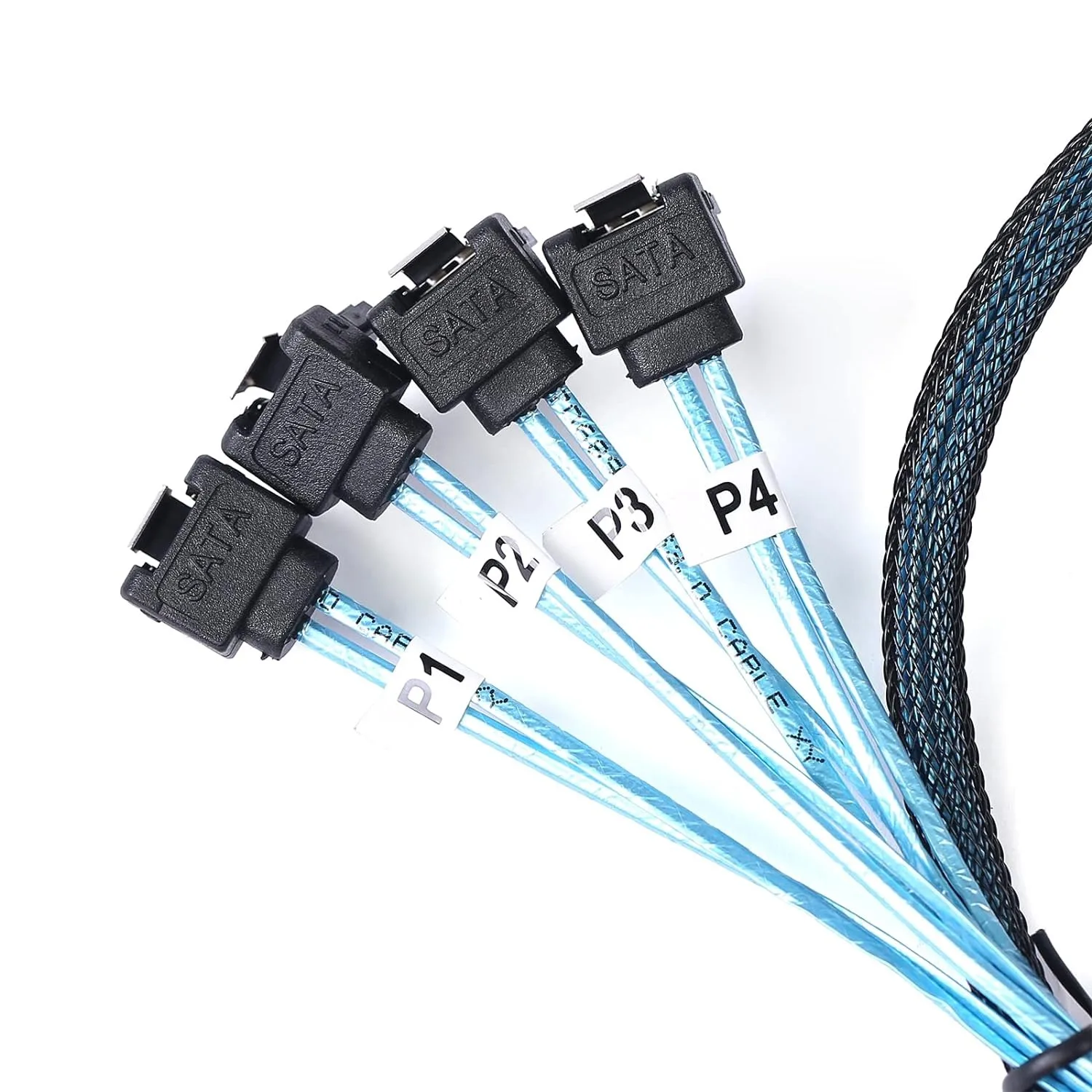 Cable de ventilador SATA 8643/ruptura de avance SATA a SATA, conector SAS 8643 para expandir el uso de almacenamiento, ruptura Mini SAS HD está etiquetada, simplifique su juego de administración de cables, HD mini SAS a SATA hembra 7pin Cable de transferencia de datos fácil enlace serial SCSI controlador y el conector SATA