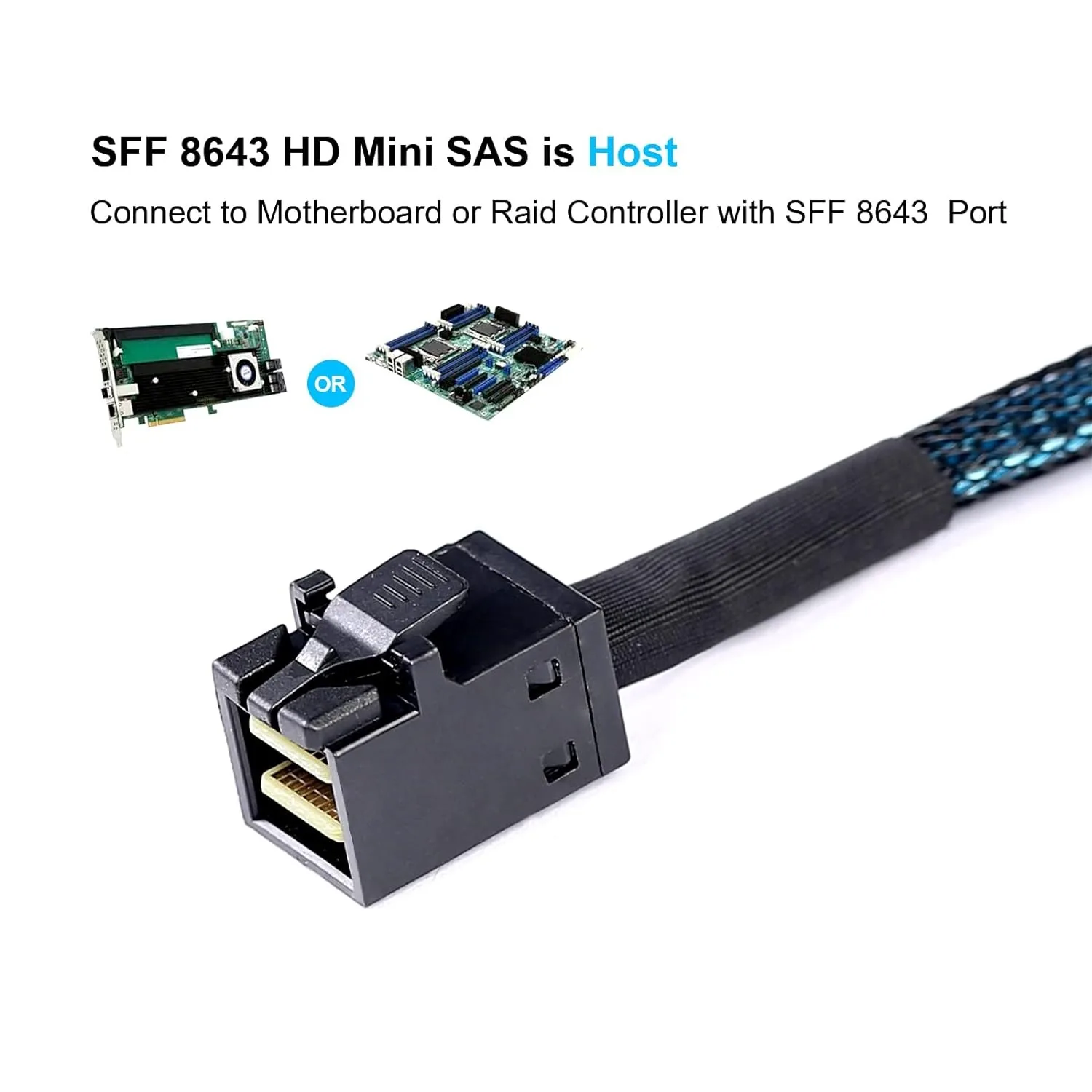 Construcción SFF8643 a SATA con cable SAS delgado y diseño tejido de cinta/trenza, elección de longitud Mini SAS a SATA de 0,5 m de longitud, trenzado 8643 Sata/SATA de m fácil de enrutar después de la instalación, el cable SAS a SATA de 8643 es una buena opción para instaladores profesionales y de bricolaje.