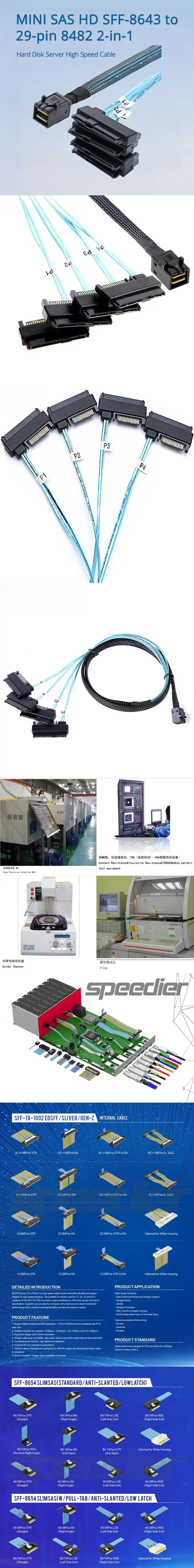 MINI SAS HD SFF-8643 a 29 pines 8482 Servidor de disco duro 2 en 1 Cable de alta velocidad Longitud opcional 0,5 M 1 M