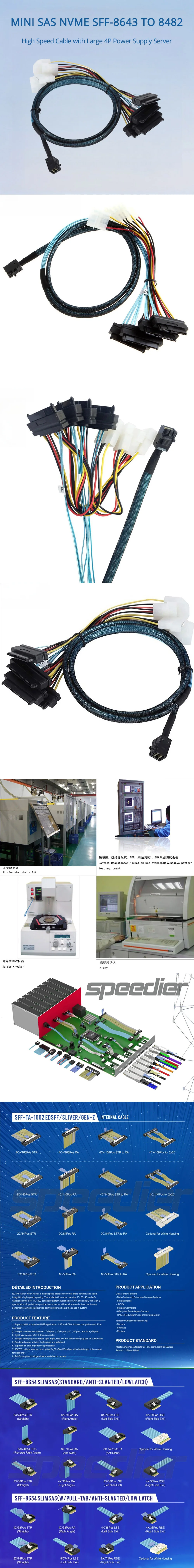 MINI SAS NVME SFF-8643 A 8482 Cable de alta velocidad con gran servidor de alimentación 4P Longitud opcional 0,5 M 1 M