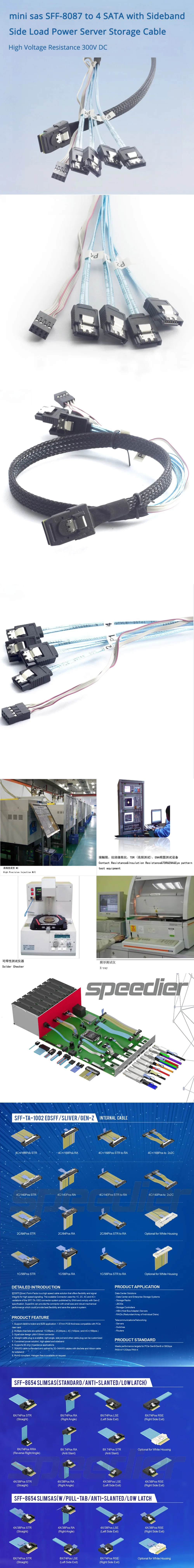 Mini Sas SFF-8087 a 4 SATA con cable de almacenamiento de servidor de energía de carga lateral de banda lateral-resistencia de alto voltaje 300V DC