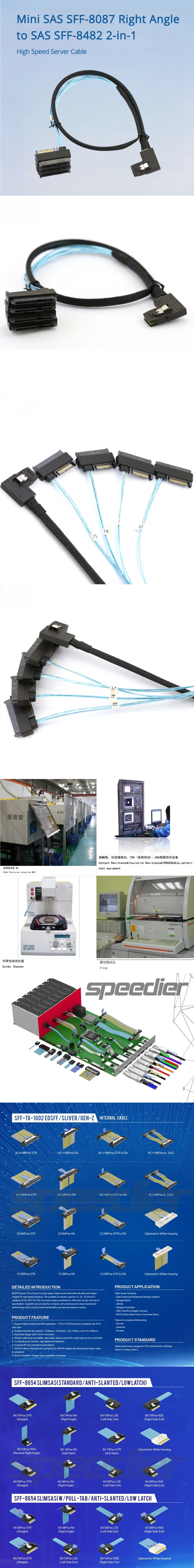 Mini SAS SFF-8087 ángulo recto a SAS SFF-8482 Cable de servidor de alta velocidad 2 en 1 Longitud opcional 0,5 M 1 M