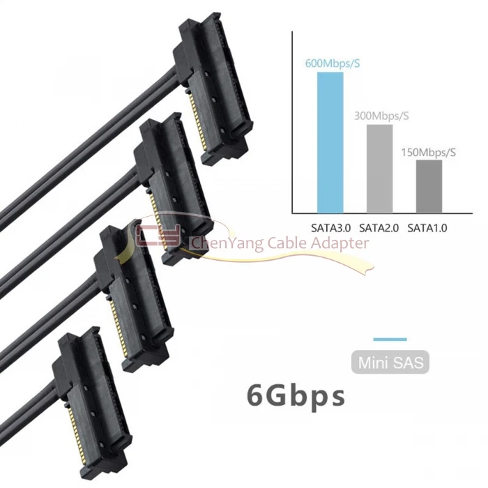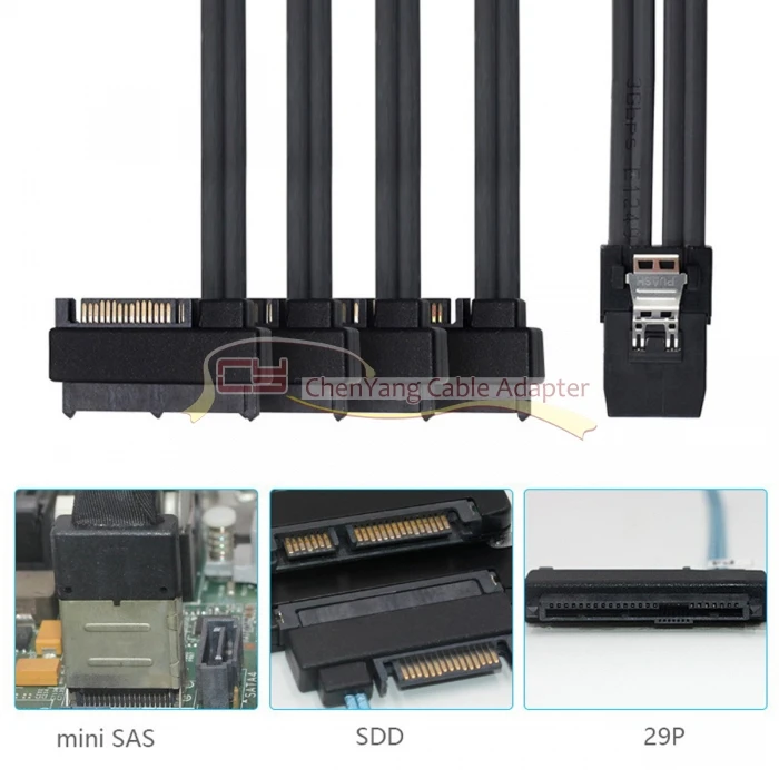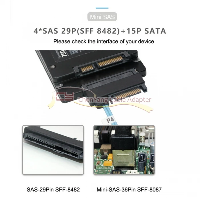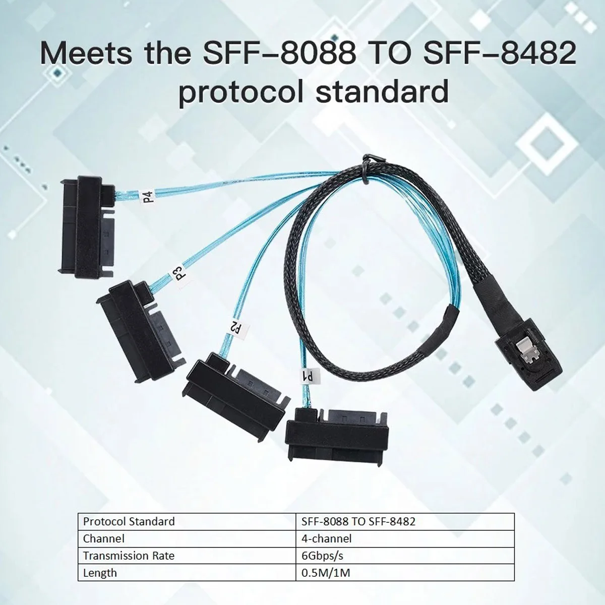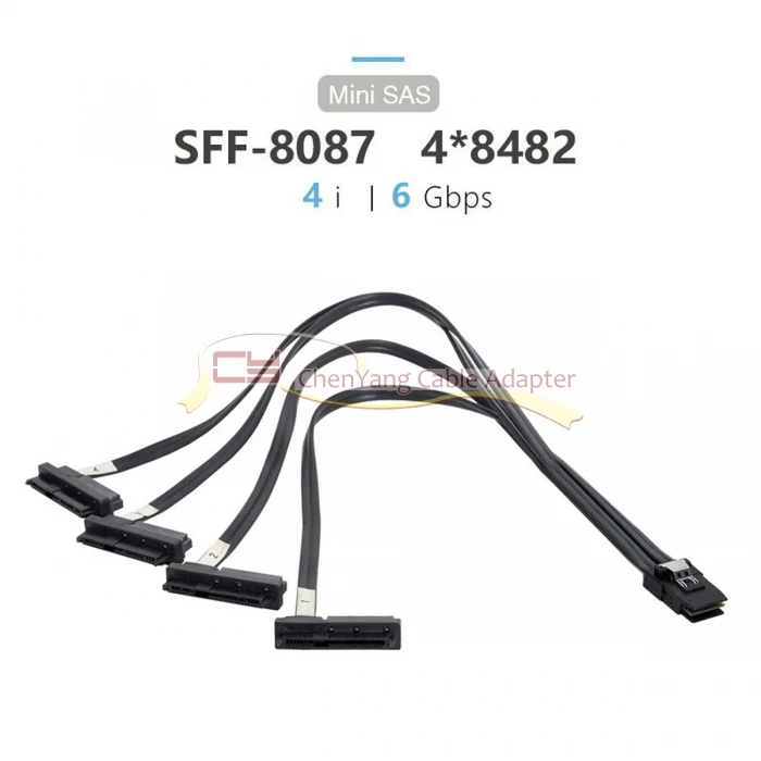 Le permite conectar, por ejemplo, un controlador con conector mini SAS de 36 pines (SFF 8087) a 4 SAS (SFF 8482) HDD.