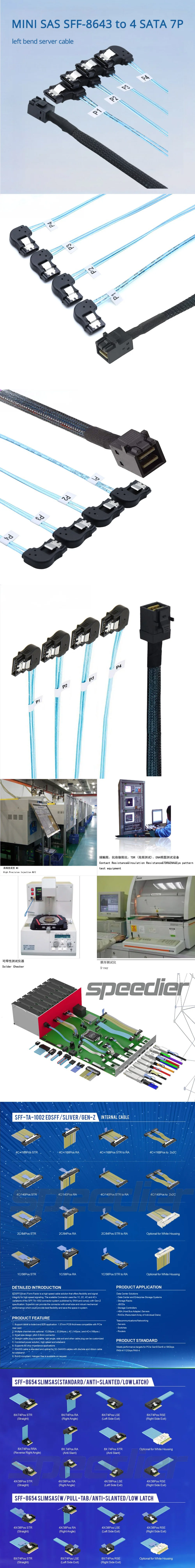 Mini SAS SFF-8643 a 4 SATA 7P Cable de servidor de giro izquierdo Ength opcional 0,5 M 1 M