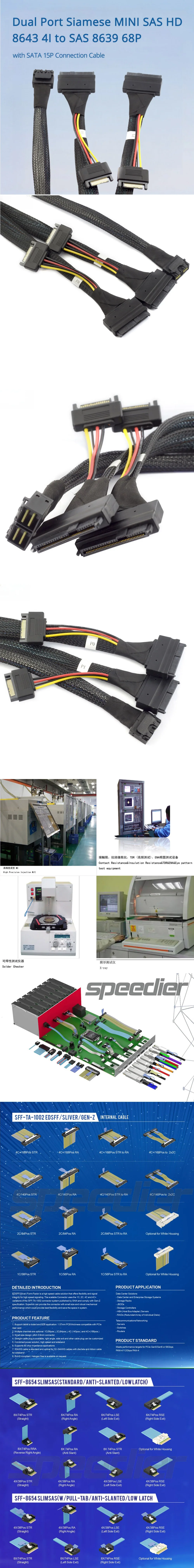 MINI SAS siamés dual HD 8643 4I a SAS 8639 68P con cable SATA 15P de longitud opcional 0,5 M 1 M