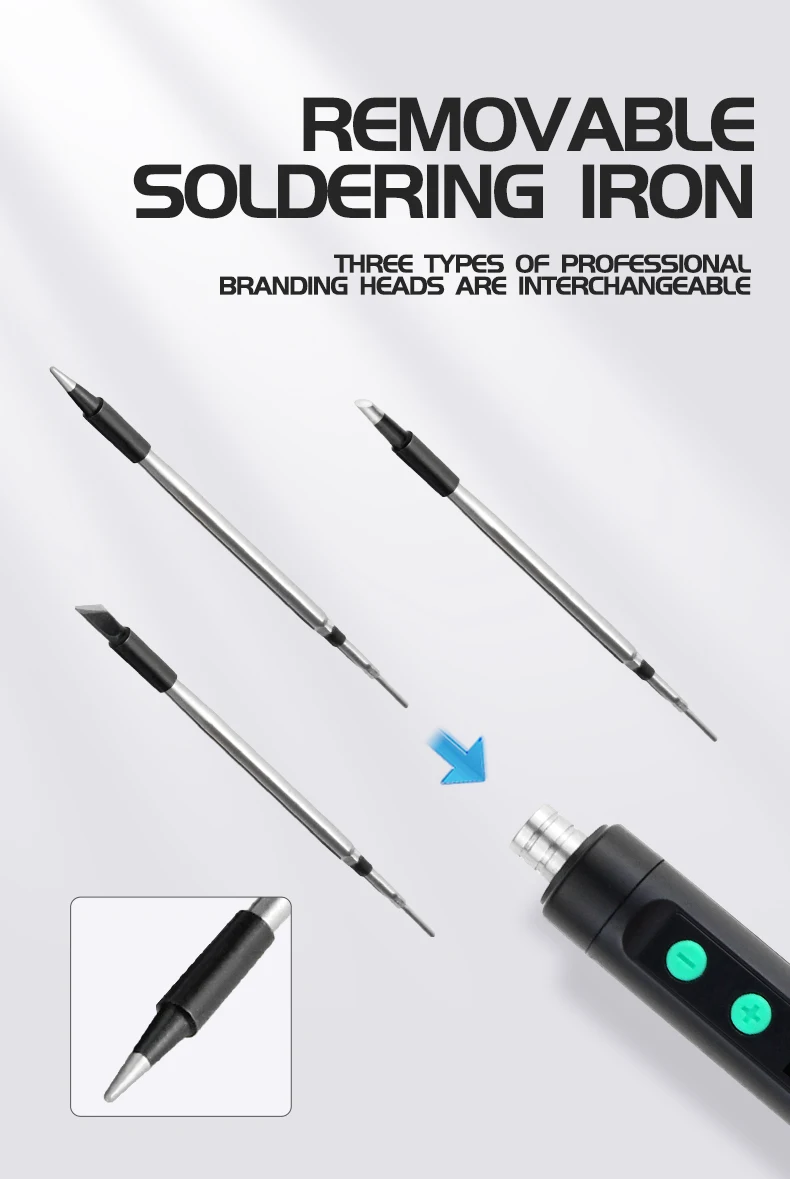 Cómo utilizar: 1.Inserte la punta del soldador en la parte inferior hasta que escuche un sonido que indique la finalización de este paso.
