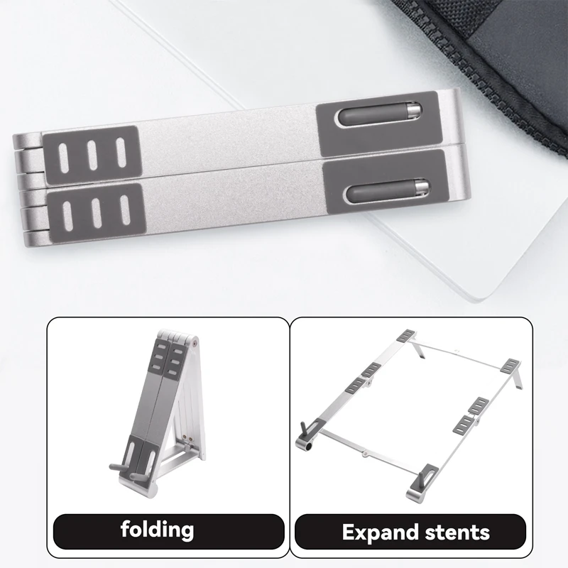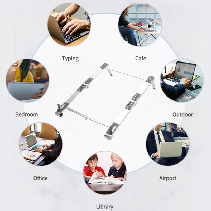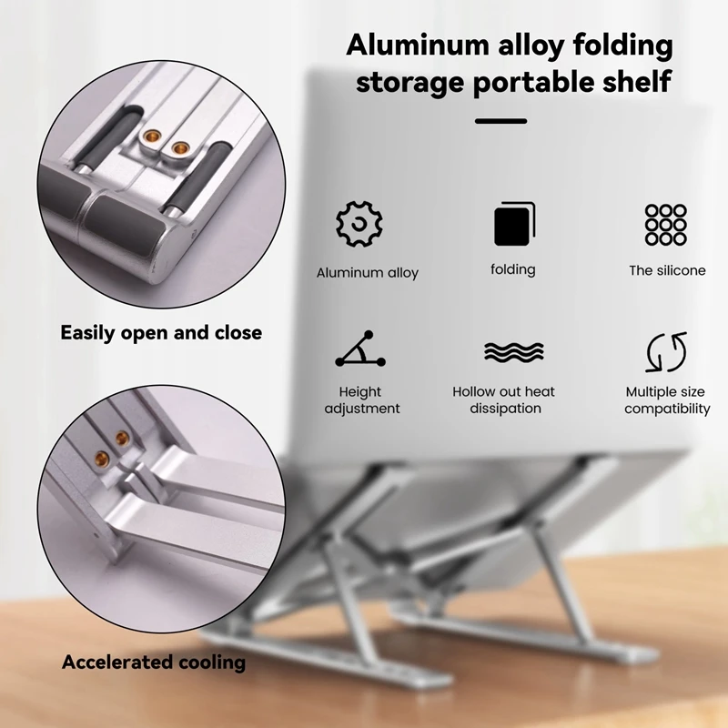 Portátil y plegable: el soporte para ordenador portátil se puede plegar en un tamaño pequeño y luego puede llevarlo a cualquier lugar como el hogar y la Oficina y durante el viaje. Es fácil de abrir y cerrar cuando lo usas.