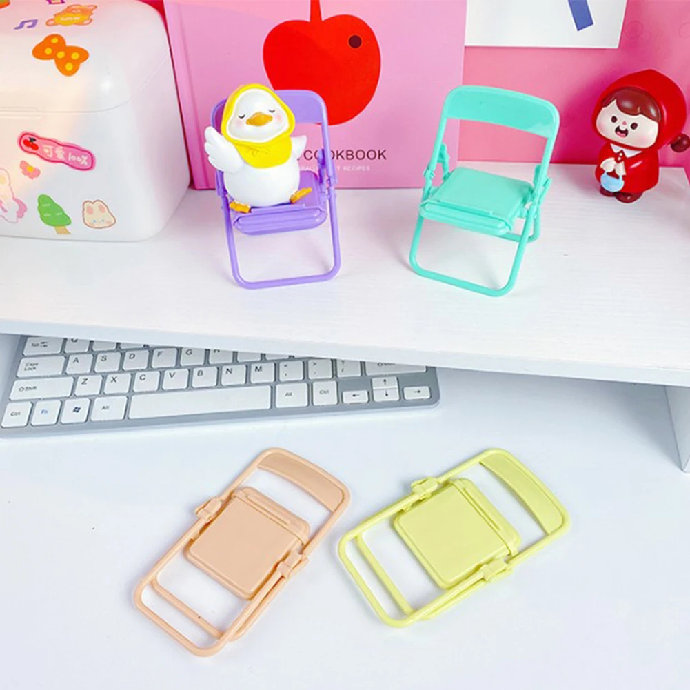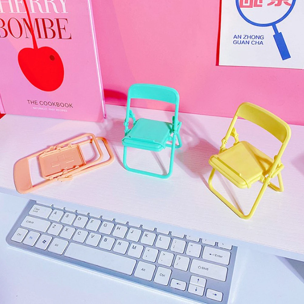 Mini soporte para teléfono móvil con forma de silla, taburete plegable ajustable colorido lindo portátil, soporte de escritorio para teléfono perezoso para teléfonos inteligentes