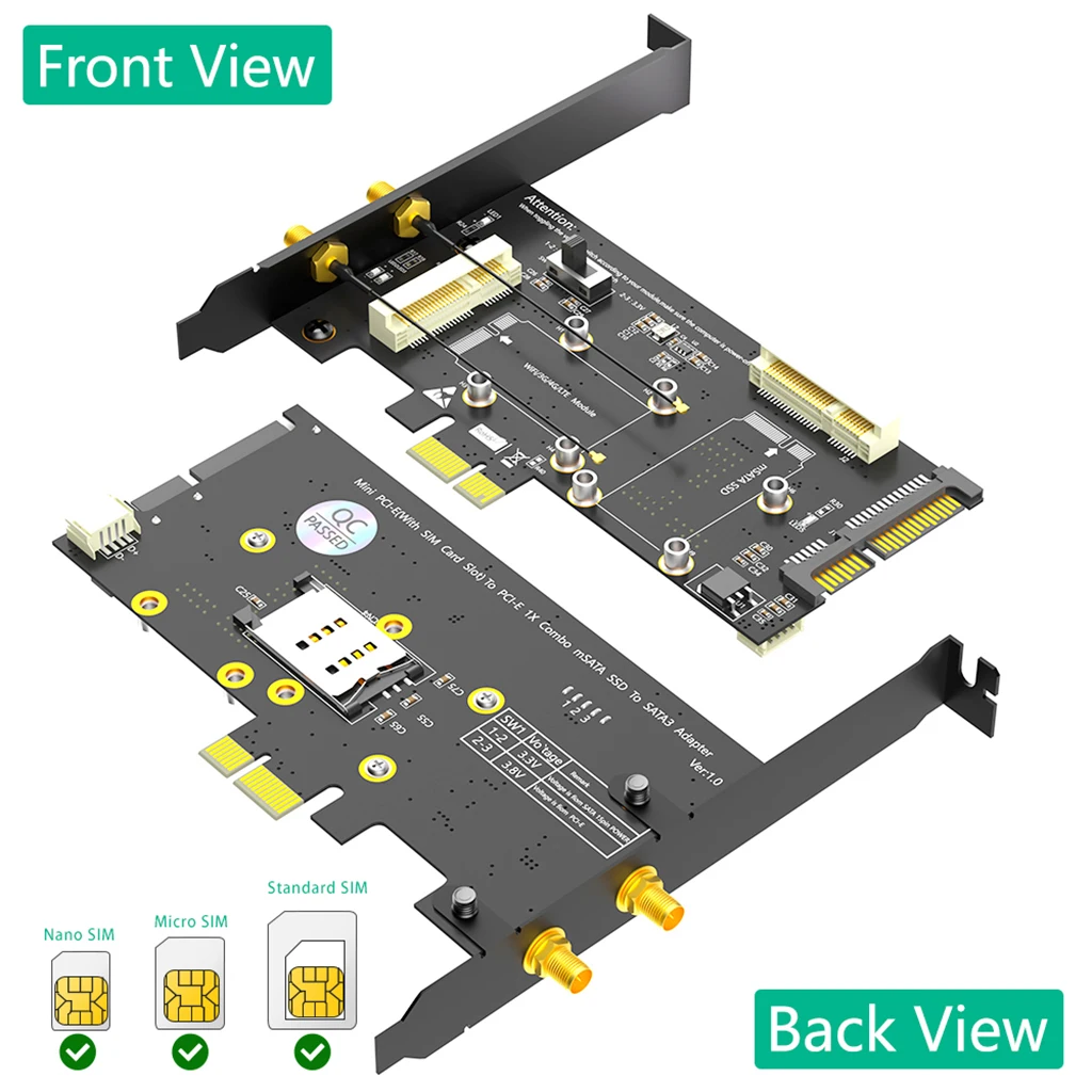 Comprar Mini tarjeta adaptadora PCI-E a PCIe 1x y MSATA a SATA3 con ranura para tarjeta SIM para WiFi/3G/4G/LTE/Msata Mini para PC de escritorio, 2 en 1