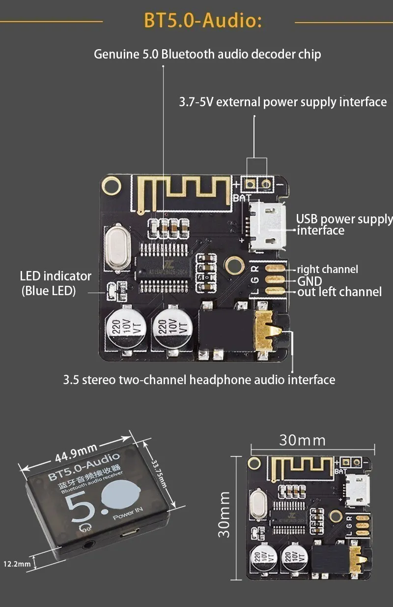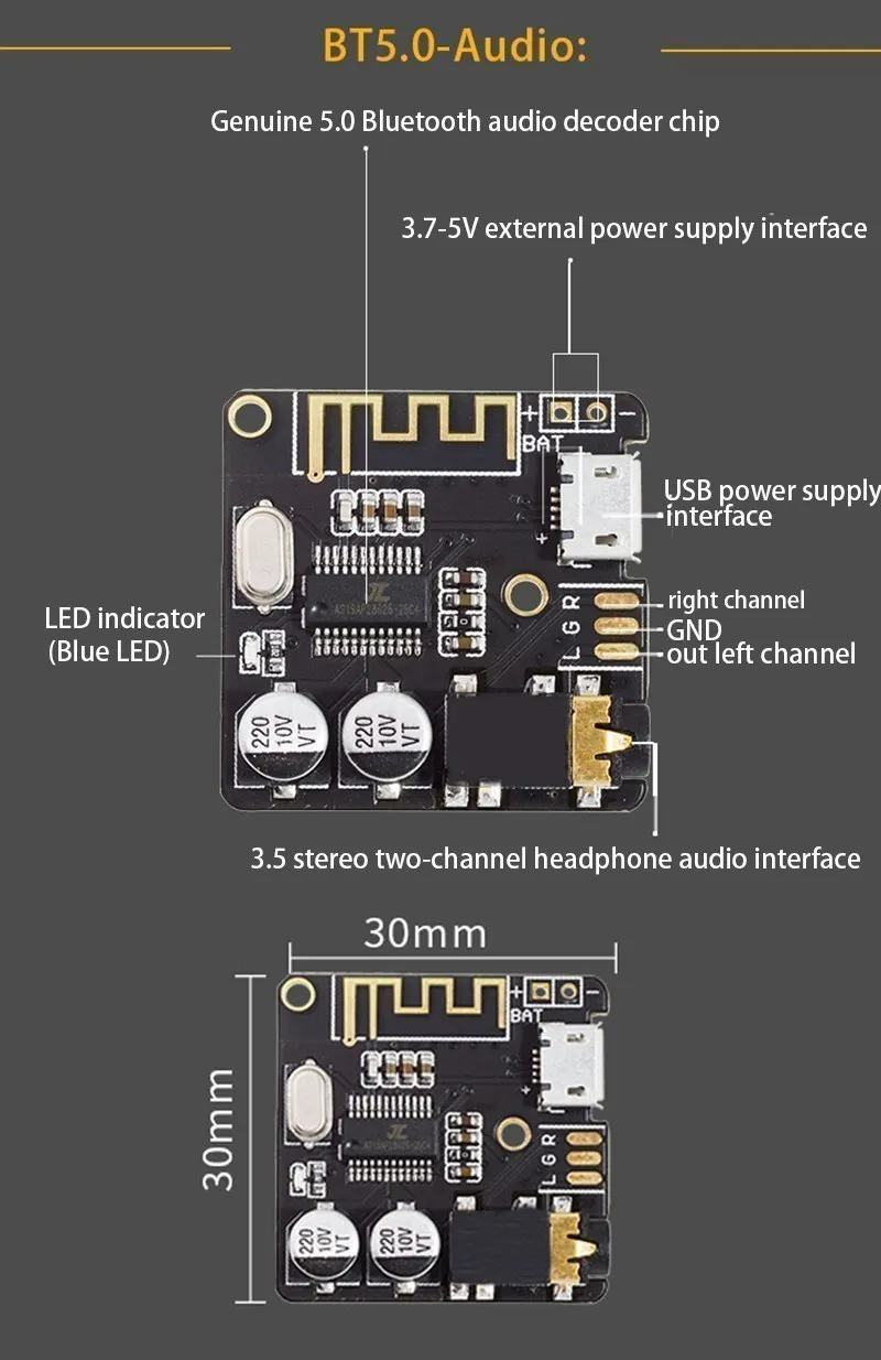 Esta versión actualiza el mensaje de voz "Inglés". Mucho después de conectar la fuente de alimentación, la luz azul es brillante, el modo Bluetooth; de reproducir Después "aviso" en modo de emparejamiento; Bluetooth del teléfono móvil busca"XFW-BT"(Nombre del equipo de la placa decodificadora), luego haga clic"XFW-BT"Conexión, la conexión es exitosa después de jugar" punta ", puede reproducir música, el Bluetooth después de desconectarse, la placa decodificadora para jugar el siguiente juego y el modo de coincidencia" pitido ". Cada Tipo de modo de" pitido "no es el mismo, usuarios pAtención para distinguir.