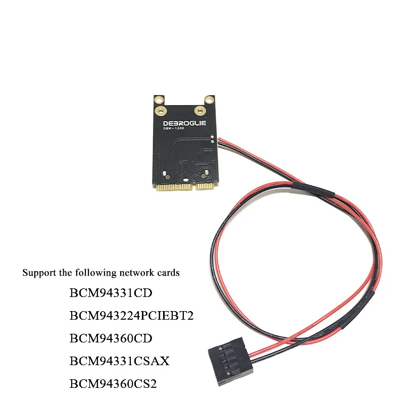 1. Este producto solo admite el módulo inalámbrico de 6 + 12 pines en el portátil Apple, y también puede admitir algunos módulos inalámbricos con el mismo pie. Pero el problema debe ser resuelto por usted mismo.