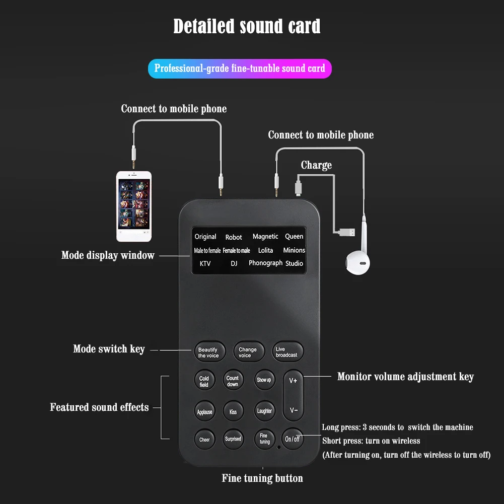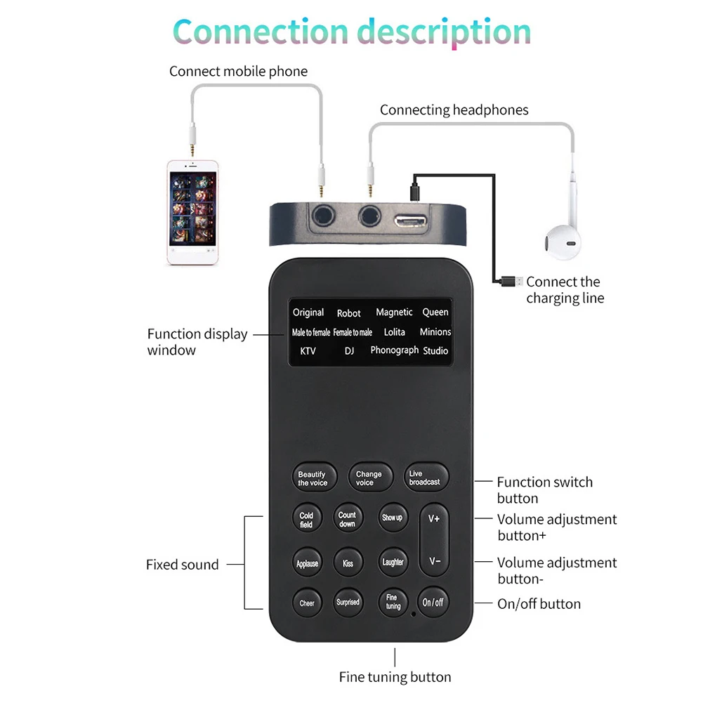 Comprar Mini tarjeta de sonido portátil de repuesto, cambiador de voz en vivo inalámbrico, altavoz, modulador de tarjeta de cambio de sonido