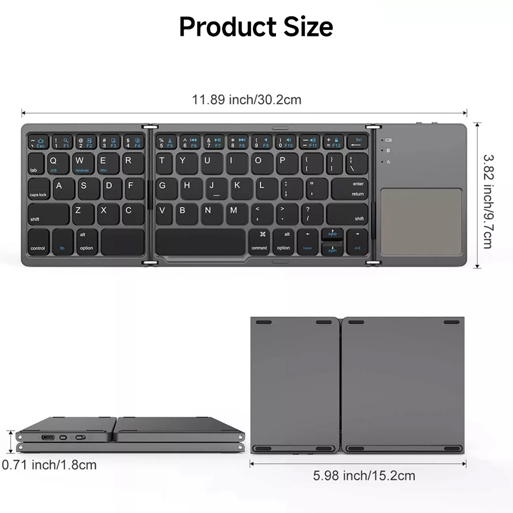Comprar Mini teclado Bluetooth español con panel táctil para Android IOS Windows Teclado inalámbrico triple para Macbook PC Laptop Tablet Teléfono móvil