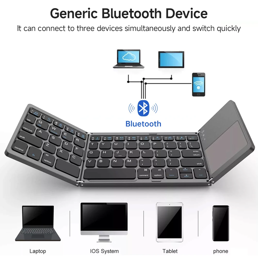 Comprar Mini teclado Bluetooth español con panel táctil para Android IOS Windows Teclado inalámbrico triple para Macbook PC Laptop Tablet Teléfono móvil