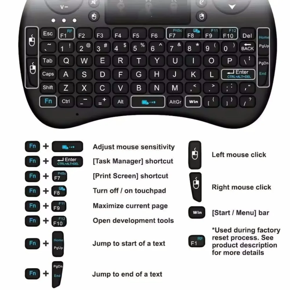- Fn+F1(RF): Teclas de activación