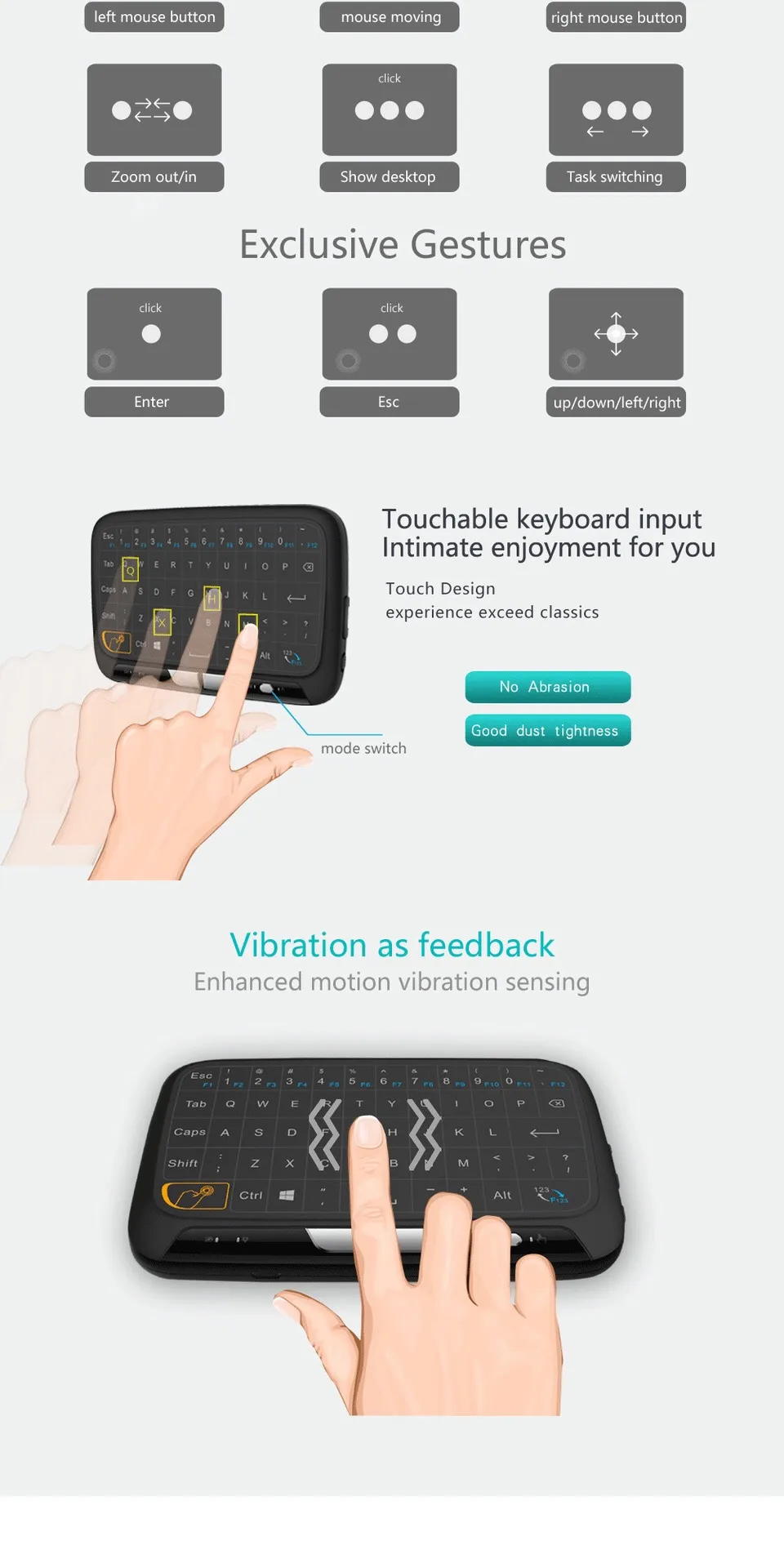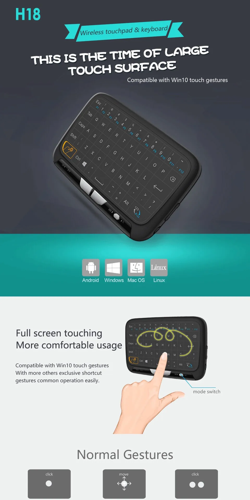 H18+ Mini teclado inalámbrico Air Mouse Pantalla completa táctil 2,4 GHz
